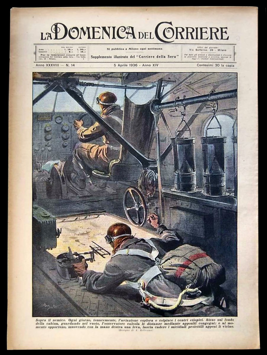 Да. Судя по нагрудному шеврону у Галеаццо Чиано это они. В июне 1935 года Чиано возглавил министерство печати и пропаганды. В августе 1935 года отправился в Африку и добровольцем принял участие в эфиопской кампании в должности командира 15-й эскадрильи бомбардировщиков "Ла Дисперата"(La Disperata), в которую входило 10 самолетов Caproni Ca.101 D2. На фото из предыдущего поста командир эскадрильи (в центре круга) вместе с летчиками эскадрильи. В экипаж одного из бомбардировщиков Caproni входили Витторио Муссолини, лейтенант итальянских Королевских ВВС, и его младший брат, Бруно. Бруно было всего 17 лет, но он уже имел лицензию пилота и большое желание к полётам. В 1936 году Галеаццо Чиано вернулся в Италию, и 09.06.1936 года в возрасте 33-х лет назначен на должность министра иностранных дел. За эфиопскую кампанию был награжден Серебряной медалю за воинскую доблесть. 1. Нагрудный шеврон эскадрильи "Ла Дисперата"(La Disperata). 2. Эритрея. Аэродром Асмары. 15-я эскадрилья бомбардировщиков "Ла Дисперата"(La Disperata). Итальянские техники подносят бомбы к бомбардировщику Caproni Ca.101. 3. Бомбы сложены. 4. Бомбардировка глазами художника из La Domenica del Corriere: "Над врагом. Каждый день, упорно, авиация разведывает и поражает центры эфиопов. Лежа на дне кабины, глядя в пространство, штурман вычисляет расстояние с помощью специальных устройств; и в нужное время, перемещая правой рукой рычаг, сбрасывает смертоносные снаряды подвешенные поблизости."