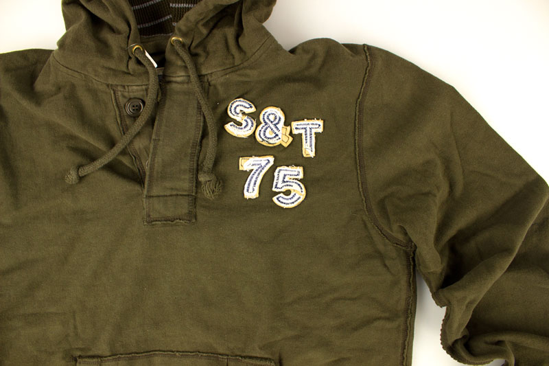 Теплый реглан-кенгурушка с утилитарным карманом. Подкладка капюшона в полоску, пуговицы на шее. Реглан "SURPLUS HENLEY" изготовлен из тяжёлого хлопка с высококачественной вышивкой на груди "S&T". Материал реглана: 100% хлопок. Ткань реглана имеет искусственные потертости и порезы. Это придает ему винтажный вид.