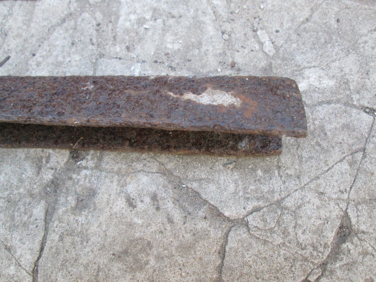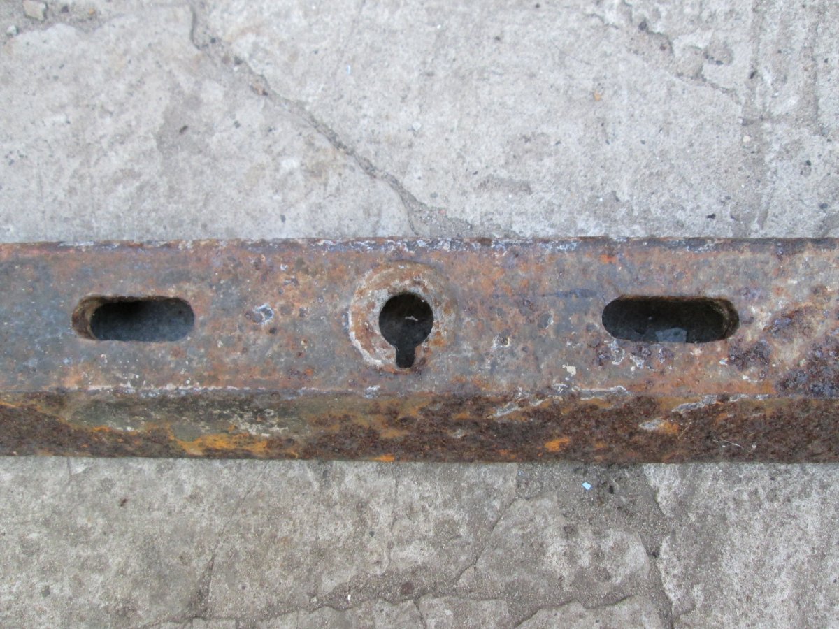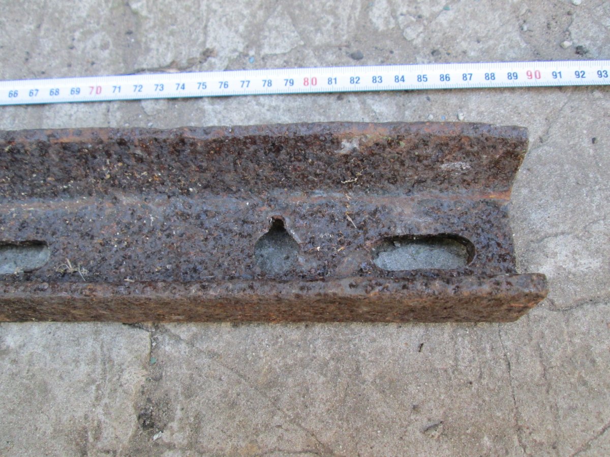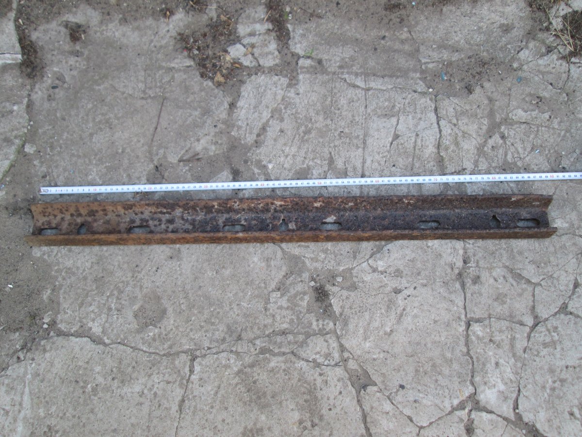 Приветствую, на опушке вылезла такая "железяка". Ушла бы в лом, но что то уж отверстия и сам профиль больно подозрителен! Сельхоз или техника по войне?