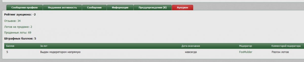 Судя по комментарию модератора, который выдал Вам 5 штрафных балов навсегда: за то, что разгоняли цену на лоты.