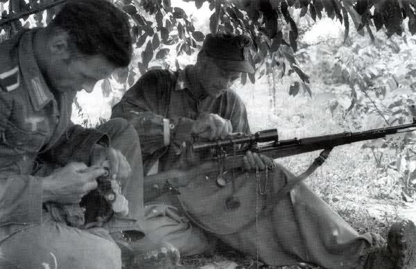 Вот и я мел это ввиду. Не всегда тряпка обмотанная возле ствола маскирует оружие, бывает даже и наоборот. Оружие маскируется прямо на местности подручными материалами, более подходящими под обстановку. И еще надо различать функциональные обязанности самих снайперов. Есть среди них свободные охотники, действующие по своему индивидуальному плану, есть прикомандированные к определенной части и выполняющие задачи по уничтожению командного состава противника или корректировщиков, а есть и линейные, действующие в полосе наступления своего подразделения и уничтожающие все важные цели (командный состав, пулеметные точки, расчеты ПТР, расчеты орудий и т.д). Последним как раз маскировка никчему.