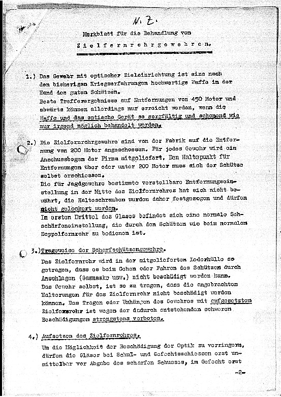 Памятка по обращению с снайперскими винтовками (на немецком, 1941 г.).