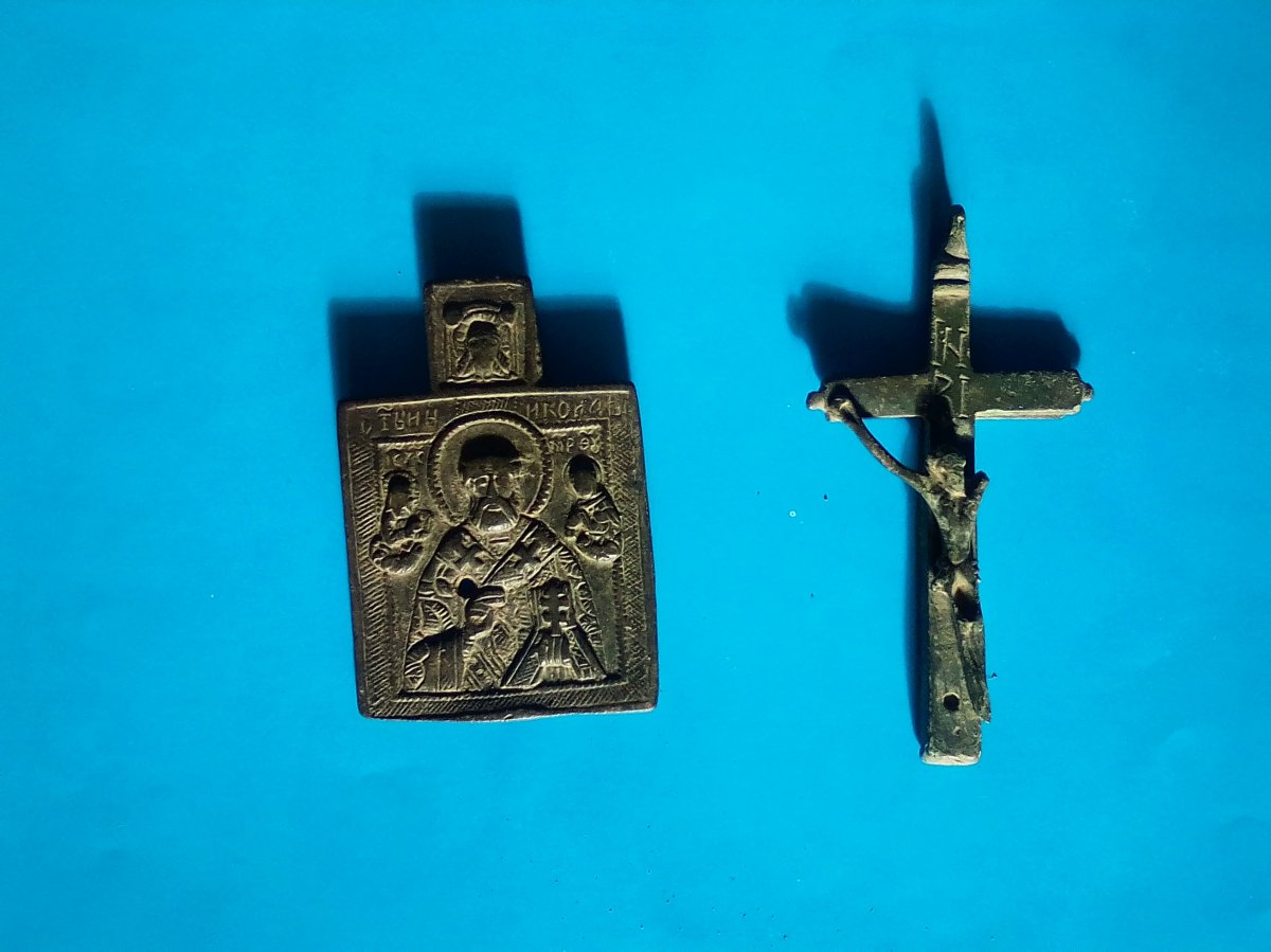 Доброго здоровья всем! Имеем вот находки: слева Вроде бы Николай-чудотворец, справа энколпион (предположительно католический). 1 размер 40Х60мм, 2-40х75. Интересует период и что может стоить? 1.jpg 2.jpg