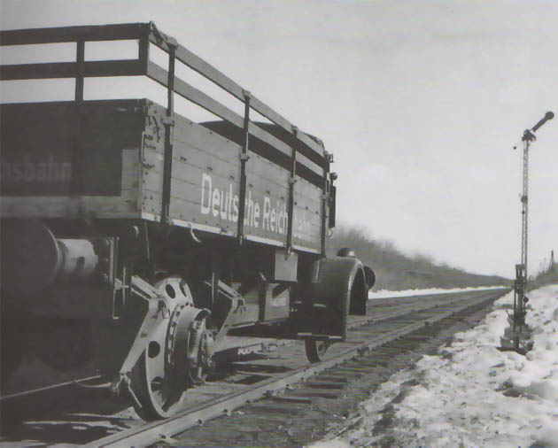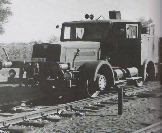 Рельсомобиль с вермахтовскими регистрационными знаками. Такой может тянуть за собой до десяти вагонов.