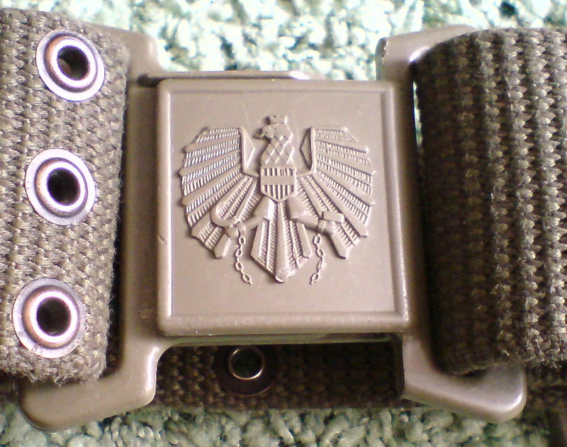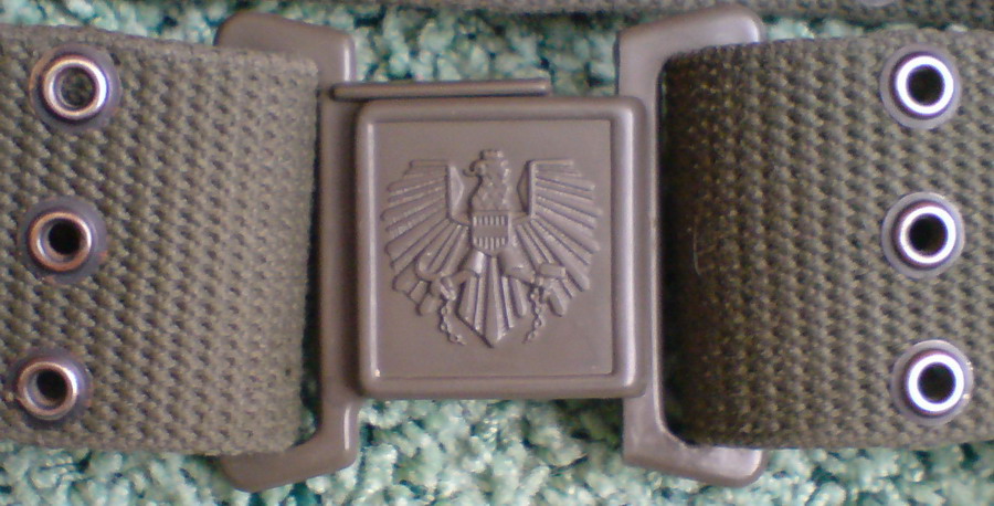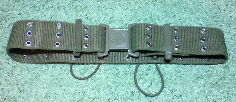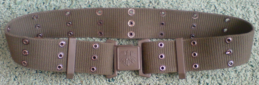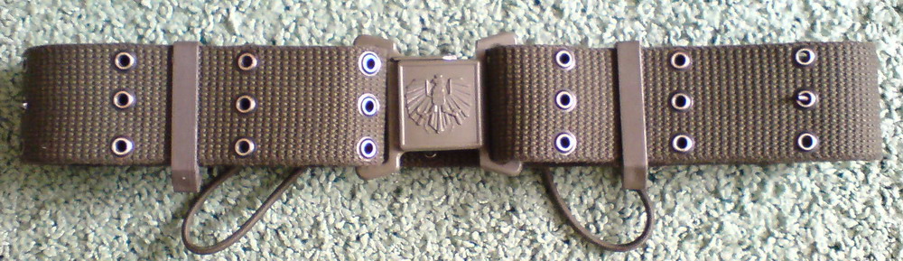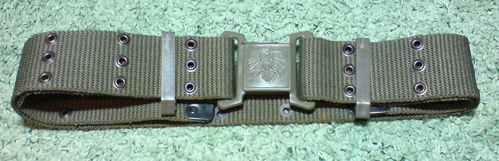 за 40: в крайнем положении на талию 104 см, носился, стирался, мелкие царапины на пряжке. за 50: на талию метра полтора, склад. Пряжка пластмассовая. С Ув.