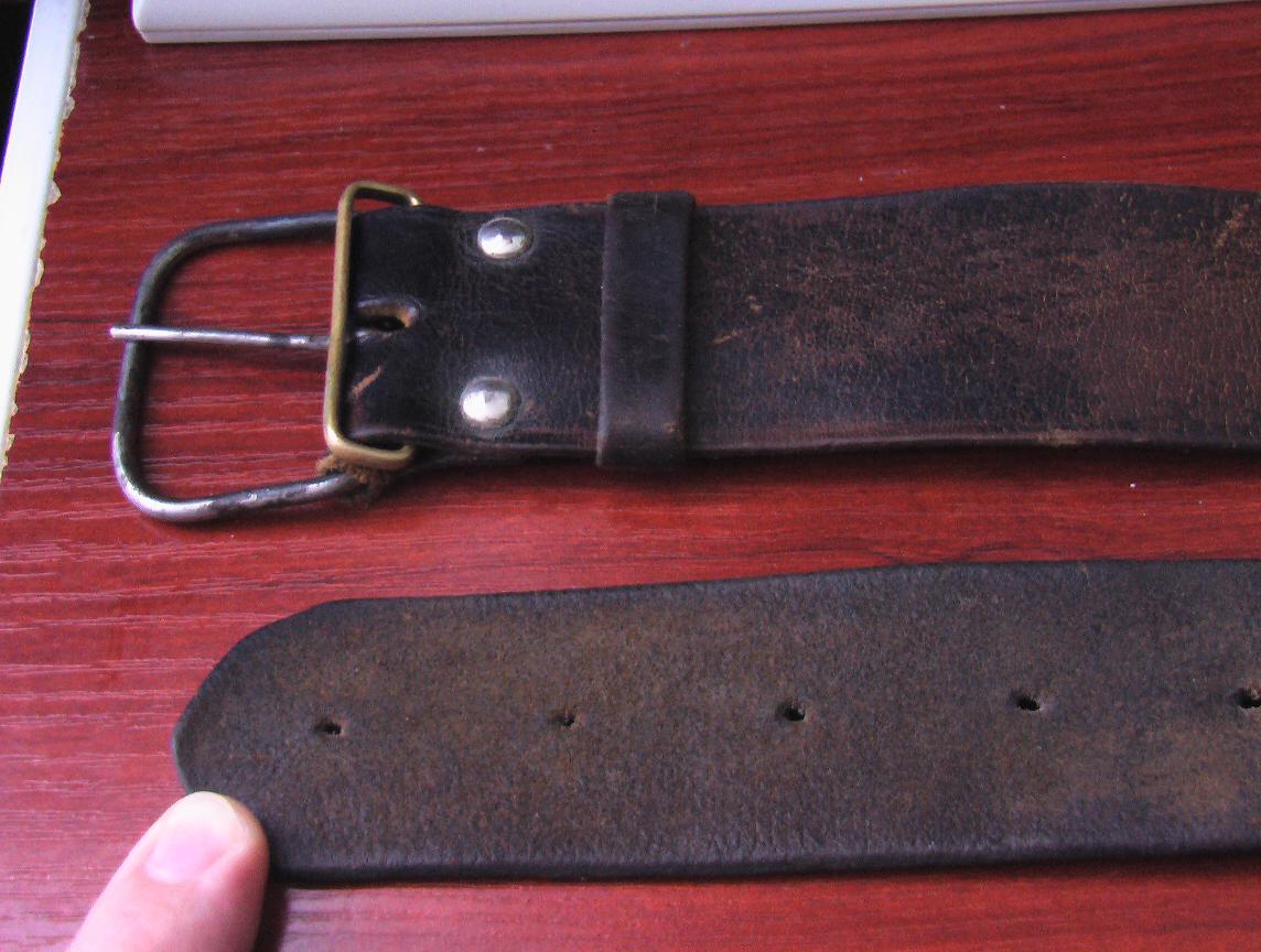 Вот попался вот такой кож. ремешок. Продавец уверял что военных годов, но судя по его хитрой роже мог и наврать. Я вобщемто соблазнился на мизерную цену 4 дол. мне погоды в бюджете не делают. Длина полотна 102 см. Кожа мягкая без разрывов и глубоких трещин. Коейм никаких не обнаружил. Друзи, помогите атрибутировать весч и соотвественно с орентировать по цене. Заране спасибо! Если надо доп. фото сделаю.