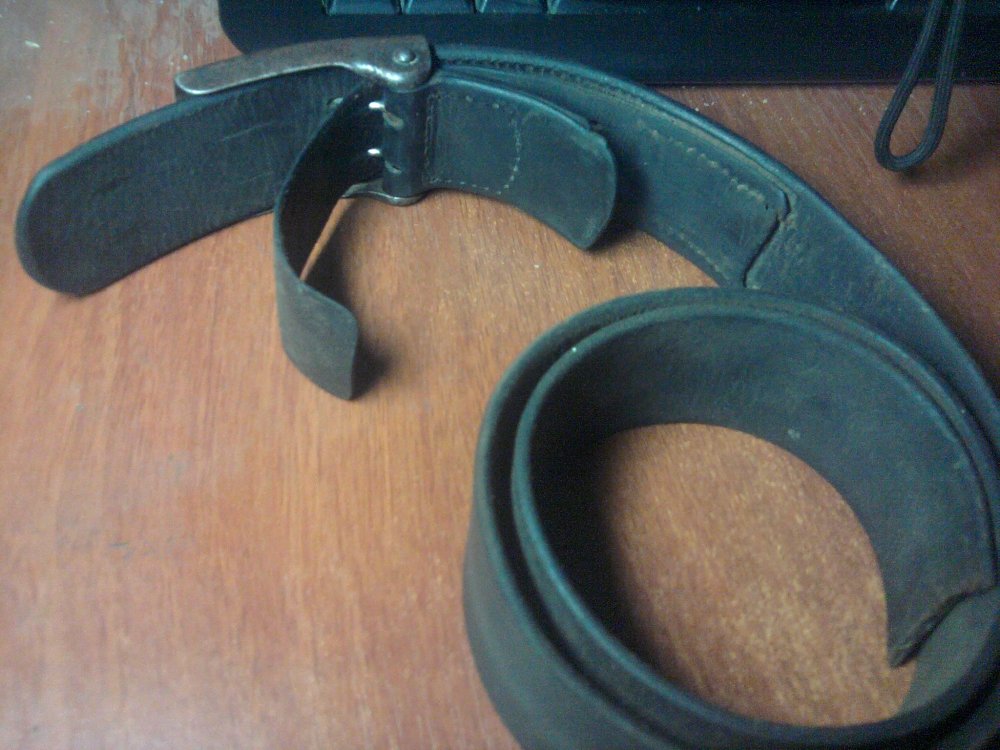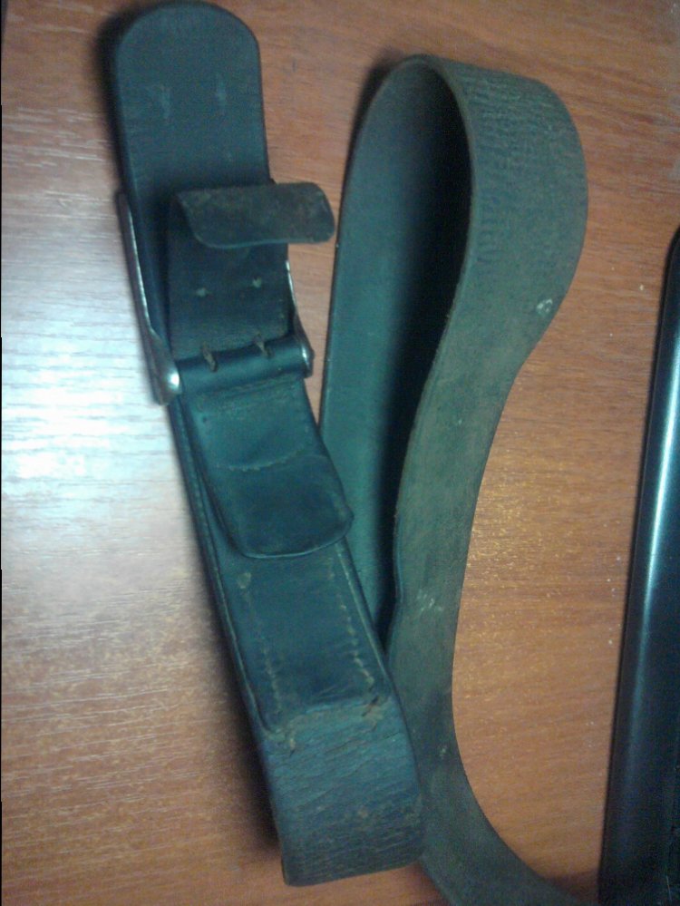 Друг подарил мне вот такой ремешок, подскажите как его более менее привести в порядок, ибо выглядит страшновато, отрезаный кусок с зацепом тоже вроде как есть( возможно ли его пришить обратно?) на хлястике пряги просматривается двойное овальное клеймо внутри год 1941, на кончике ремня цыфра 100 (я так понял длина в см) На пряге клейм не видно.