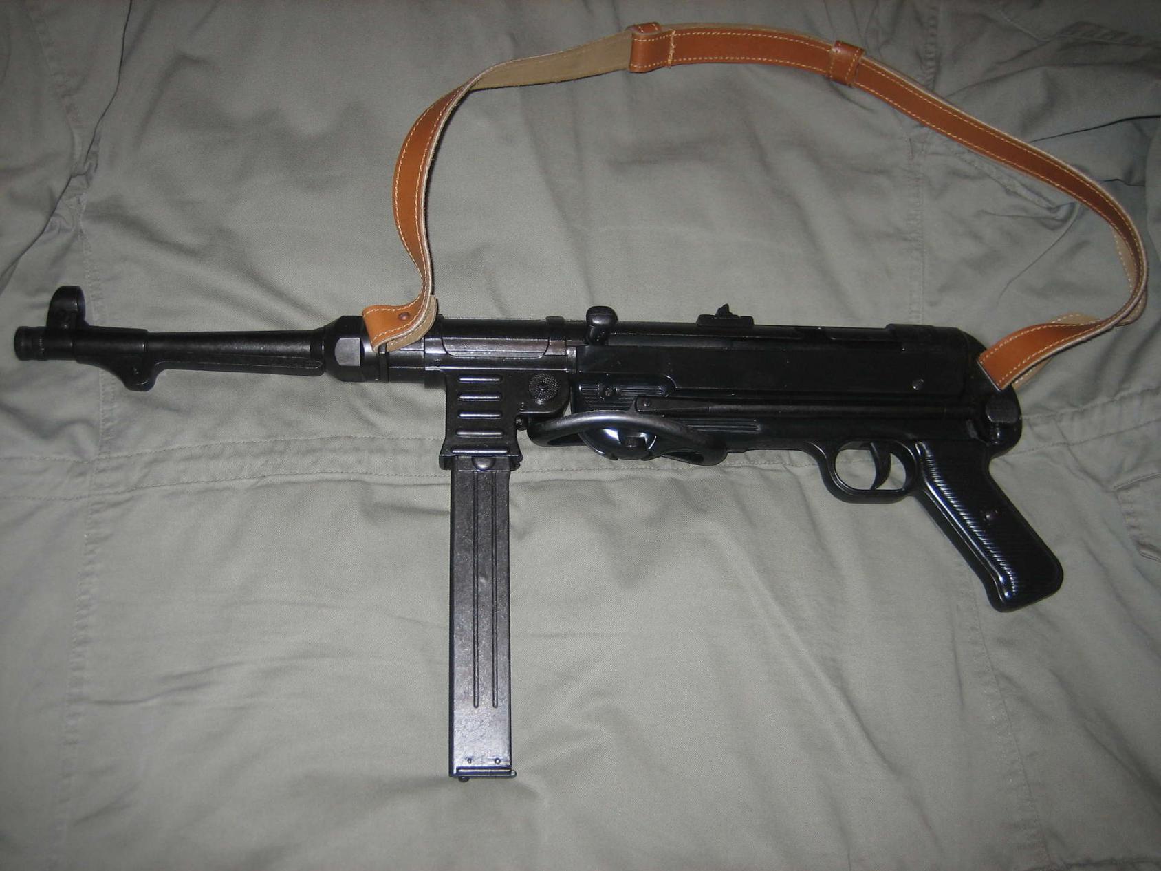 Фото оригинала МР 38 с плечевым ремнем на правую сторону (у реплик МР крепеж для плечевого ремня почему то слева).