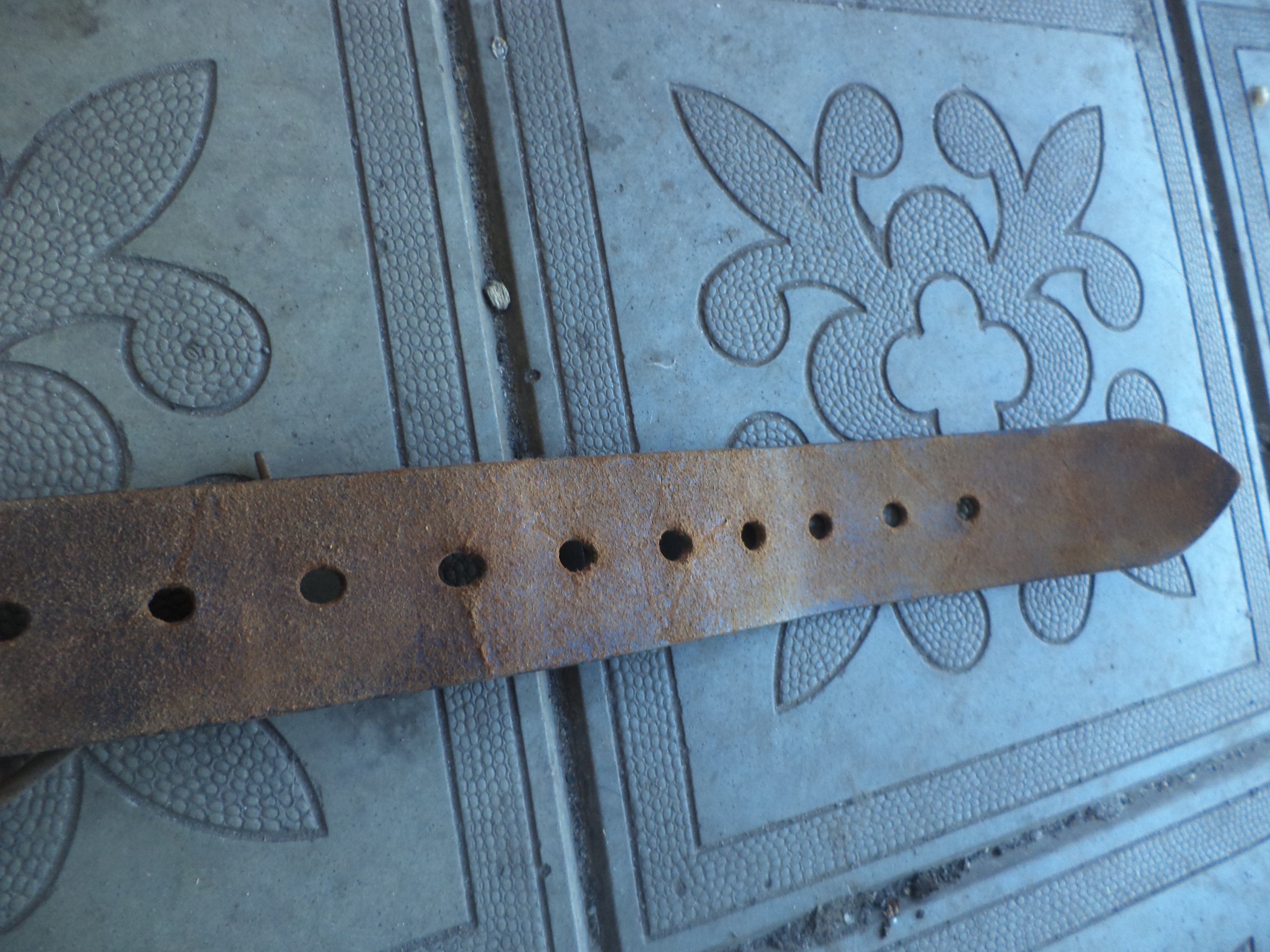 Всем доброго дня! Прошу оценить, на данный момент, такой ремешок. Кожа мягкая, не пересохшая. Все нюансы постарался указать. Длина от оконтания ремня до окончания подкладки пряги - 116 см. Из минусов: повреждения прошивки и дополнительное отверстие. Плечевые ремни, понятно, не родные, но из ранних: вся фурнитура из цельной латуни.