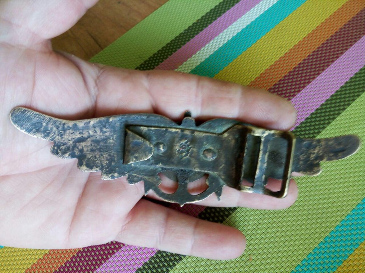 Приветствую! Подскажите по происхождению и цене вот такого непонятного звера! Нержавейка, не магнитная, ворота и крюк - латунь. Размеры ремня - длина 1м.14см. ; ширина 4см. зацеп ремня -железо; пряга 7,1/5,1 см. Всем (по теме) высказавшимся спасибо и респект!