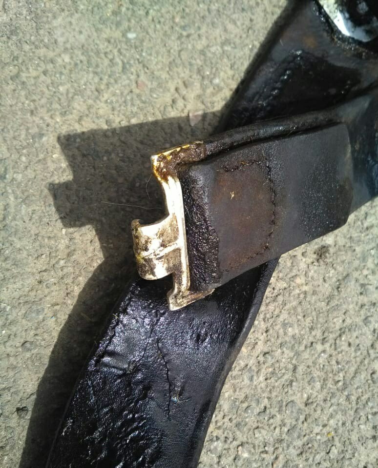 Приветствую. Прошу мнений по реальной цене ремня. Есть осколок в ремне мелкий,пряга тоже пробита. Ну и от сухарки крюк остался на нём.