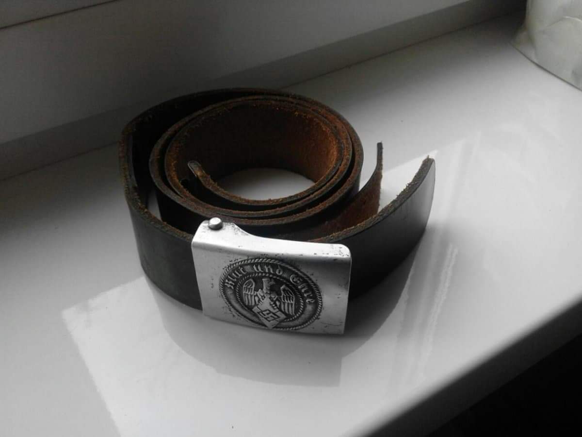 Всем добрый день!Все на фото,пряга не плохая ,но уже денацифицирована,клейм на металле нет,только на кожаном флясте. Ремень в очень приличном состоянии, длина 85 см.,хорошая мягкая кожа,без надрывов и вмешательств,естественно мелкие трещинки от возраста на поверхности ремня и фляста пряги присутствуют....Можно смело дальше использовать по назначению,из минусов -утеря ниток прошивки в районе зацепа и фляста. Сколько можно просить на сегодня в гривне,думаю ставить на аукцион.