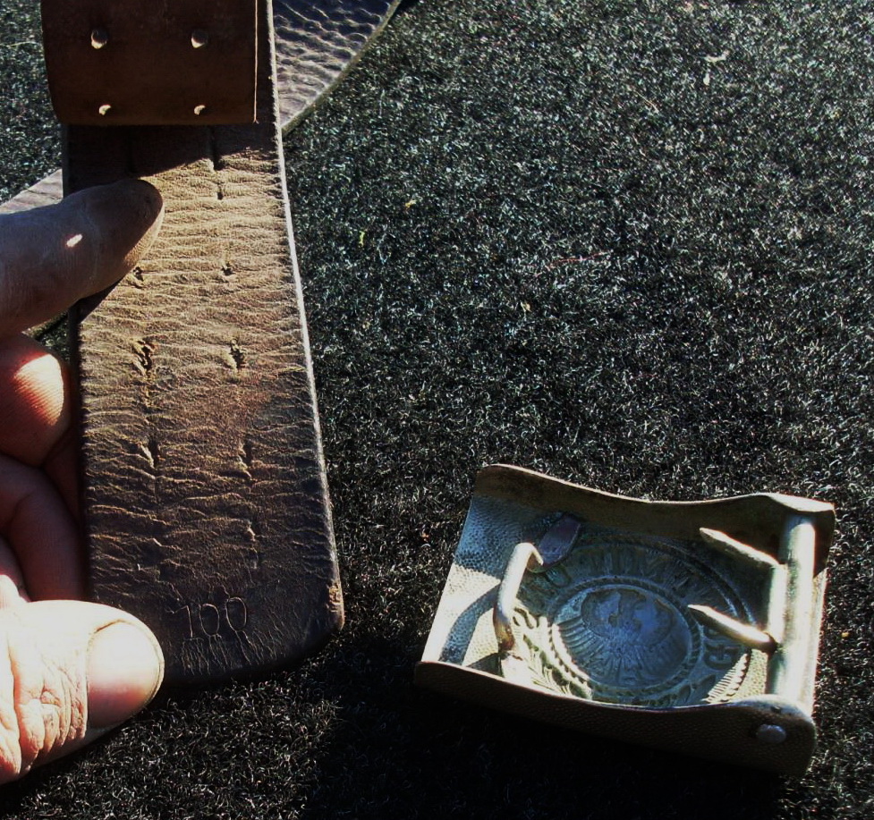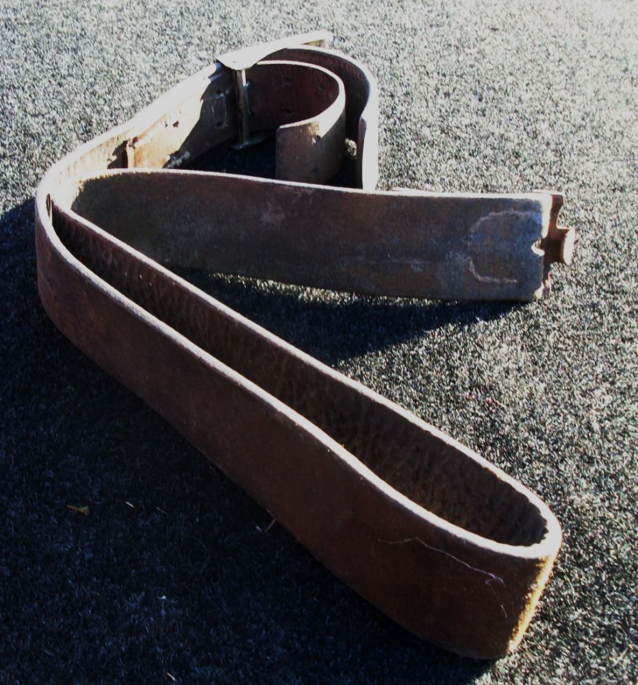 Кожа без потерь но с дефектами. Длинный хляст перешит, под крюком дырка да и по саму ремню дырок наделано. Так что особой ценности он не представляет, а пряга дол.50 стоит.