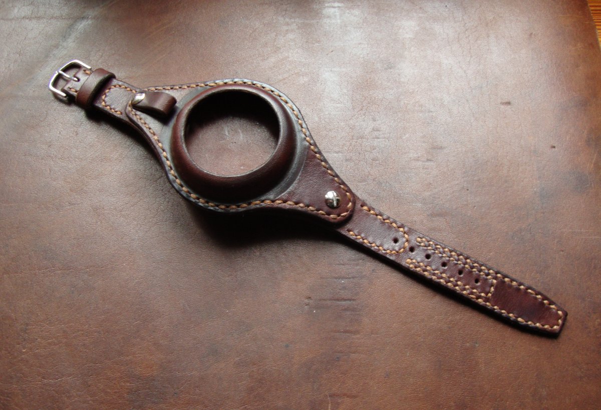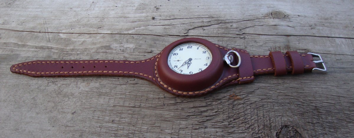 Вопрос по теме: есть вот такие часики, размер стандартный "под Молнию 50 мм", но циферблат повернут на четверть оборота. Я так понимаю - надо на ремешках как в посте 51 вырез под головку делать сбоку и там-же оставлять "язык" для вставки часов.. Получится что-то похожее сделать? Как думаете?
