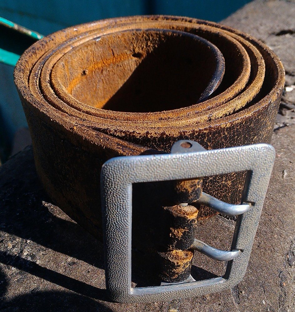 Какие тогда отличия послевойны от поздней войны? На поздних ремнях пряжка обязательно из цинка и, как правило, без клейм...
