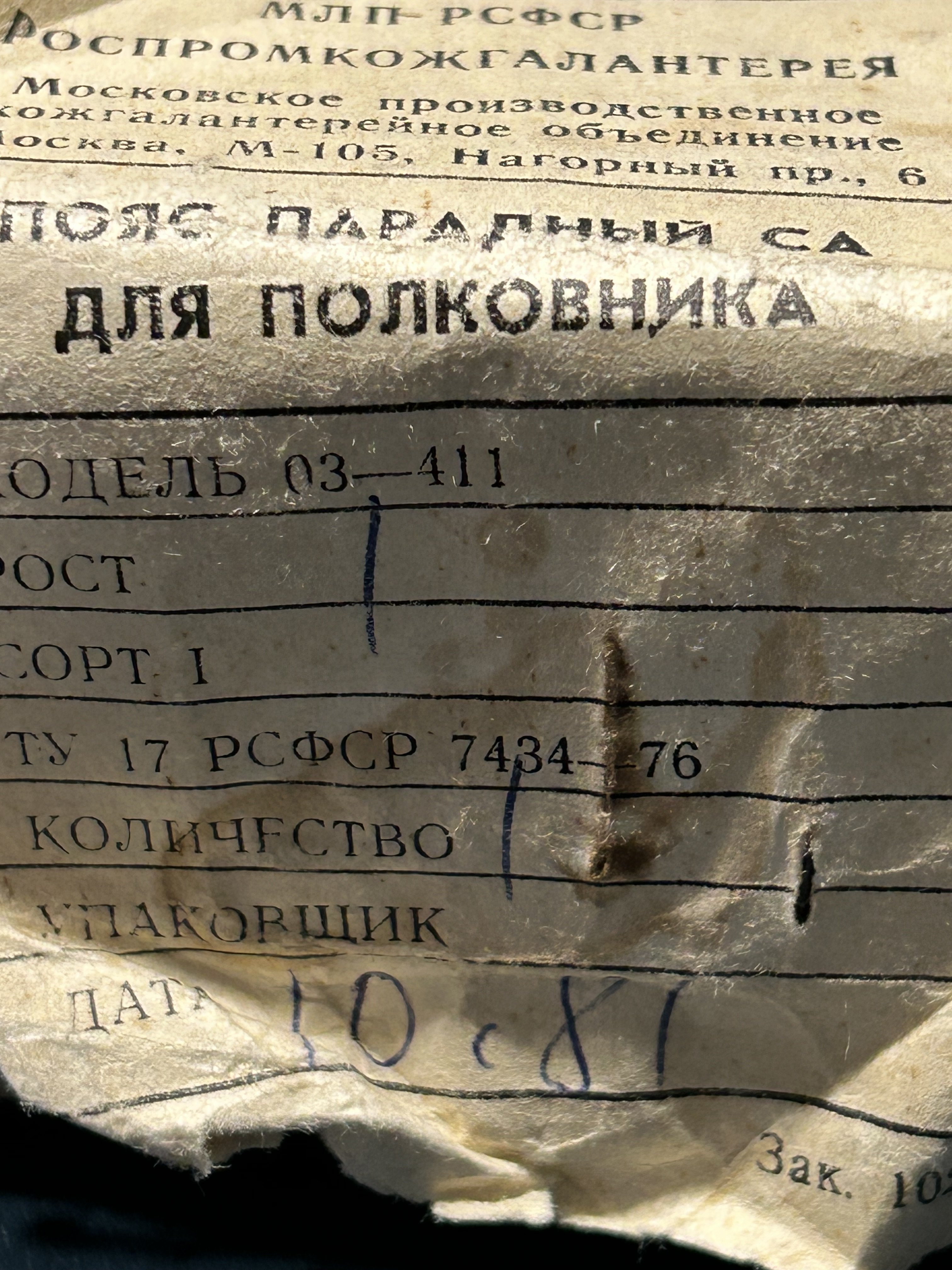 Да я прочитал, на коробке, что для ПОЛКОВНИКА.. Надо копаться в приказах по снабжению. Наверное, это было не принципиально, если носились и обычные ремни. Отец ушел на пенсию в 2003 году с чистой выслугой в 41 год. После смерти я забрал форму к себе. Так и храню. Другого ремня точно не было.
