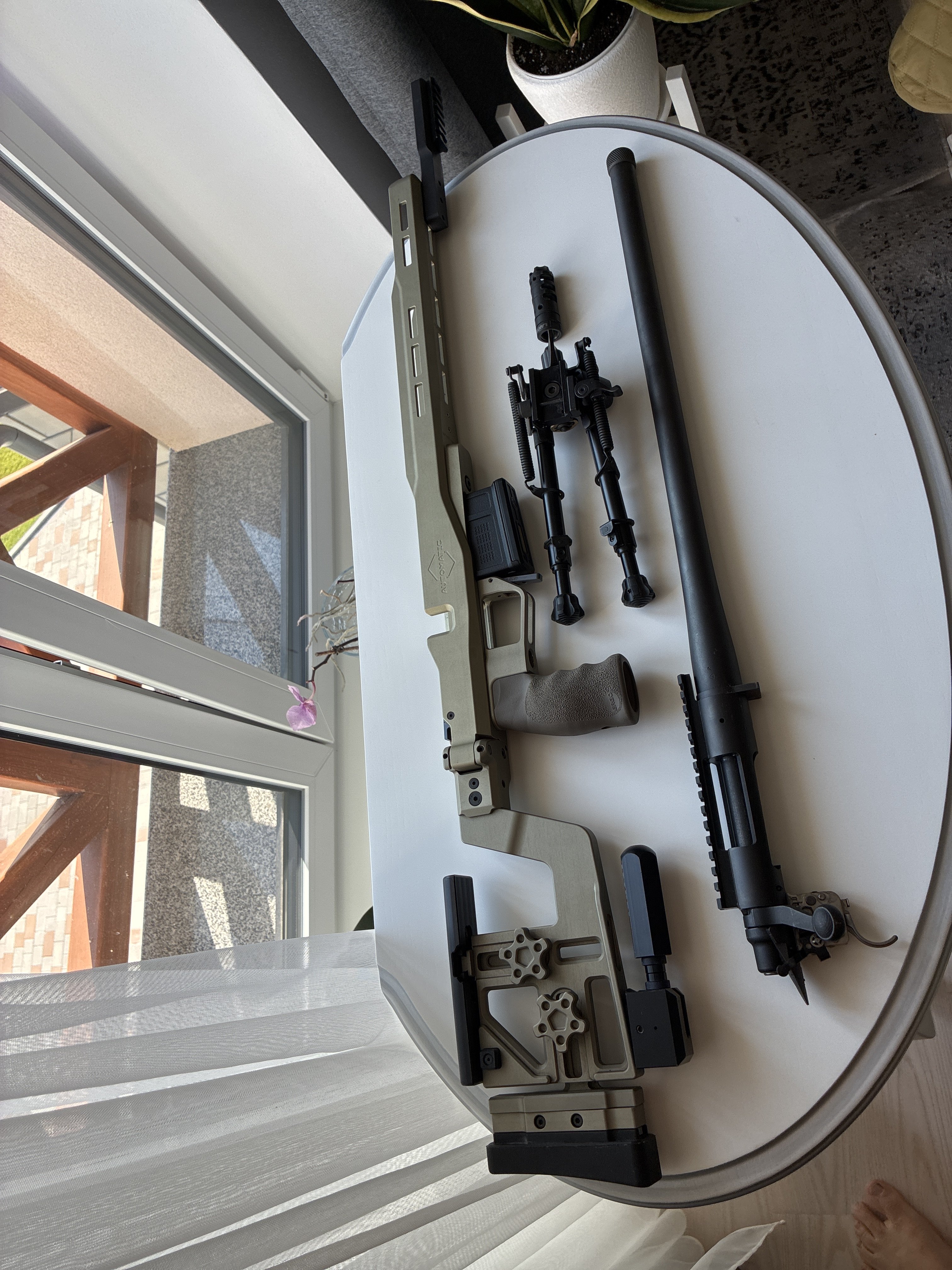 Вітаю спільноту .Продаж девайса ,в популярному .308 win калібрі.Відстріл -НДКЦ та пристрілка (фото нема ,треба -зроблю ;5 пострілів з ходу 0,7 моа було).Зібраний на базі Remington 700 ADL Tactical ,,вкладений в ложе Automatic .Ствол вармінт,20 дюймів .В комплекті магаз на 10,руківʼя Ergo вертикальне,,третя нога Lethal eye,гайка захисту ,дтк Lantac dragon,саунд,винос під сошки ,сошки Tip-Top,,стальна планка (вклеєна).За все -65 тис .гривень.Територіально -захід.Під потребу -оптика додатково можливо.