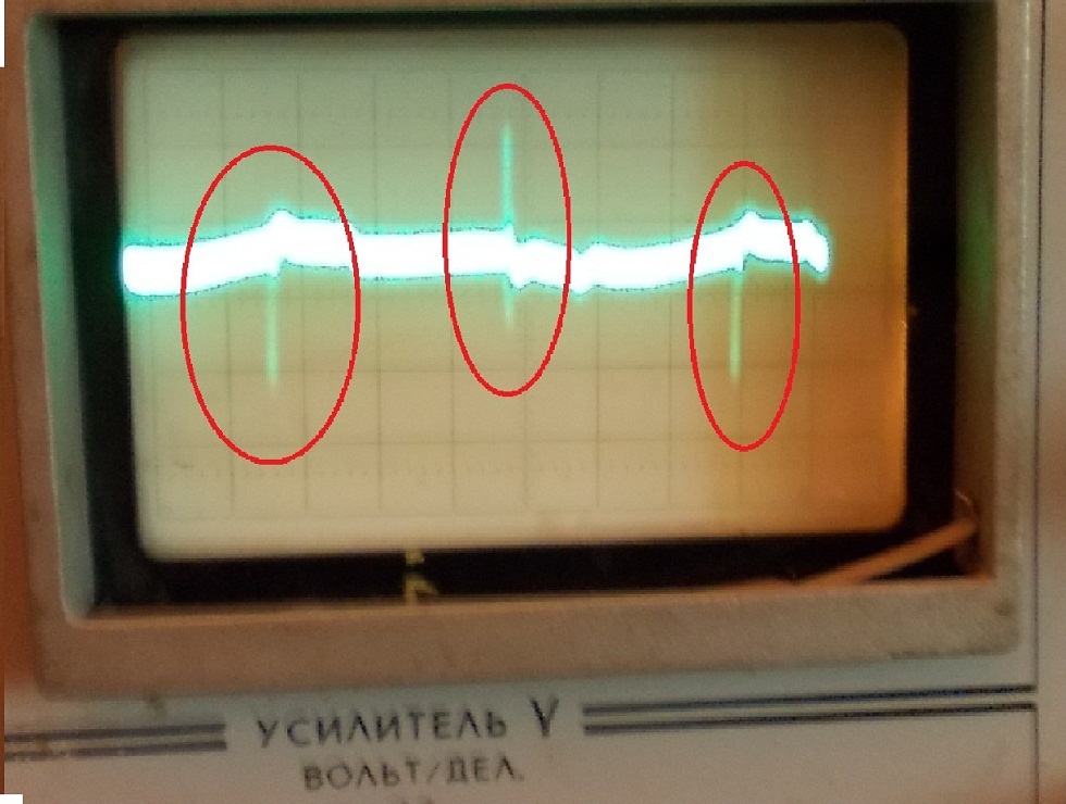 Наконец добрался до осцилографа и наступил новый этап ремонта 750 модели. После замены некоторых деталей МД ожил, запел, НО: 1. Чуйка низкая 2. Дискрим съехавший 3. пинпоинт работает через раз. Отсюда несколько вопросов ув. РаДевану: 1. За что отвечают подстроечники на 1 и 2 плате (по фото) 2. Сигналы на выходе ключа 14016 (точки 3,5 на фото 3) далеки от прямогугольного, а сигнал на входе усилителя RX (осц 6) и на его выходе (осц 7) какие-то подозрительные - так должно быть? И ещё. Баланс катушек пробовал сводить подстроечником в катушке и подложкой 10 коп украины, получилось нечто (фото 4), эти всплески - нормально? Кстати, напряжения на выходе RX - постоянное 4В, переменное - десятки миливольт.... Жду с нетерпением ответа.