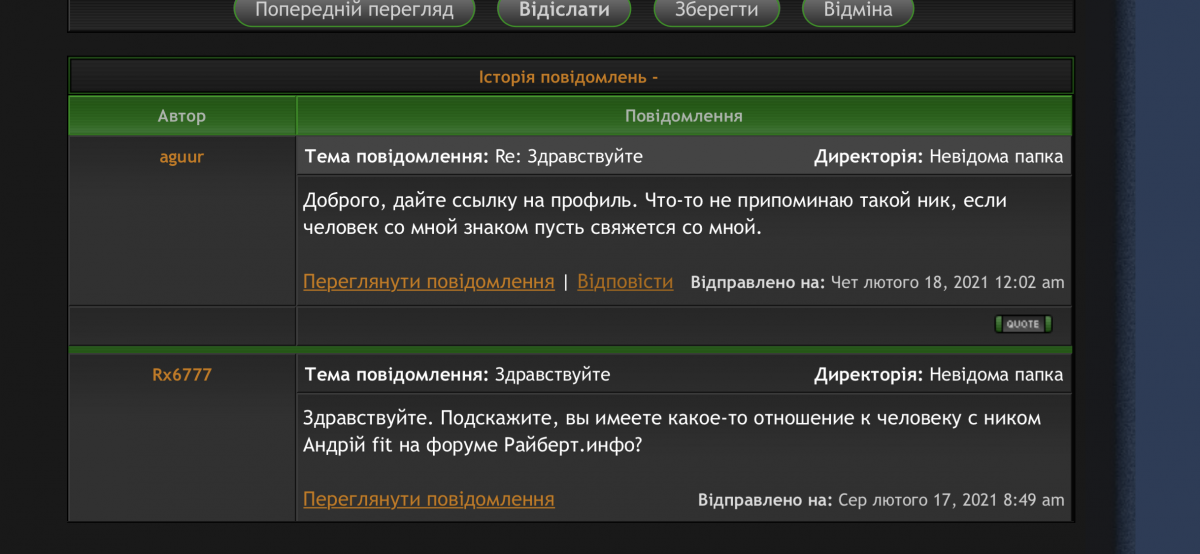 Вітаю нашу спільноту. Як на мене то - явний розводняк. Камрад на форумі декілька тижнів і одразу заявляє про себе як "майстра" , а інформації про його роботи - ноль, фото чужі, контактного телефону немає, чесне ім'я майстра хотів захистити нік одноденка. Стосовно людей в погонах? Ні!..то "майстер" создавав собі видимість роботи: за тиждень нарезервував два десятки стволів і резервуарів(а просив реквізити і ставив резерви з надією що ставитимуть лайкі і піднімуть статус). В Чернігові не так багато "пневманутих" і якщо ми не знаємо один одного в обличчя то хоча б пересікалися інтересами на форумах. МАЙСТРА з ремонту і зборки ПСП в Чернігові немає!