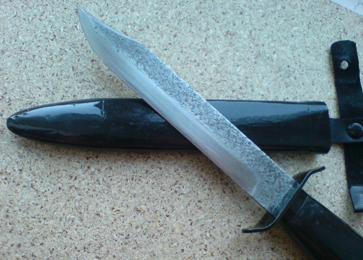 Подскажите по цене?! Толщина клинка - 2,1мм, почти выдержаны все размеры, марка стали клинка 11РЗАМЗФ2 (мехпила), клейм нет, дерево - дуб!