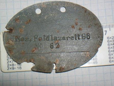 Жетон образца 1915 Reserve-Feld-Lazarett.96 Nr.62.все шо могу сказать..в энциклопедии по Рейсхееру,такого номера не нашол с близь лежащих,были 93 и 94.Но раз написано тут так, значит и такой существовал,или может какой перейменовали.Потом посмотрел,еще в одном исторчнике,где больше номеров резервных и обичных,тот там нашел 96,но опьять таки,проходит как фельд,а не рез.фельд.да,то думаю уже детали.