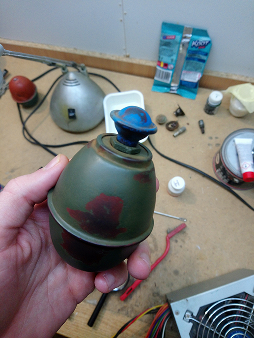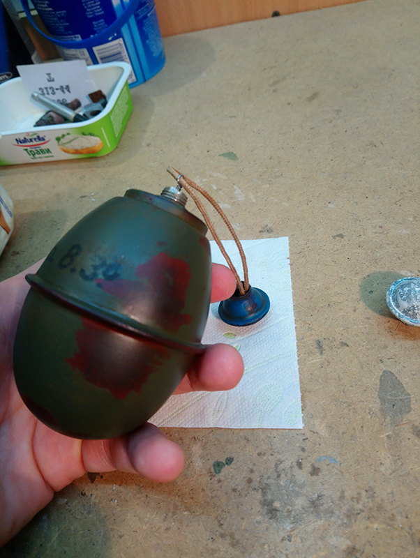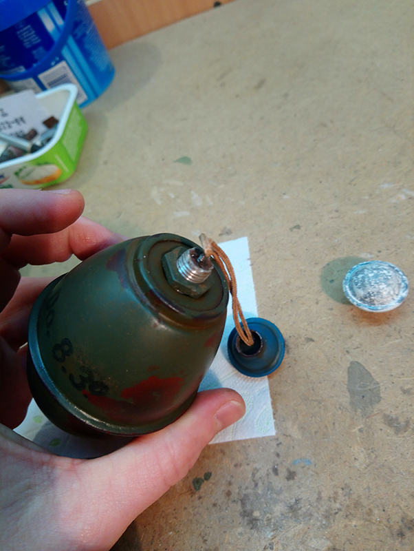 Так,как взрывателя у меня нет,решено было сделать его замену в виде болтика М10.