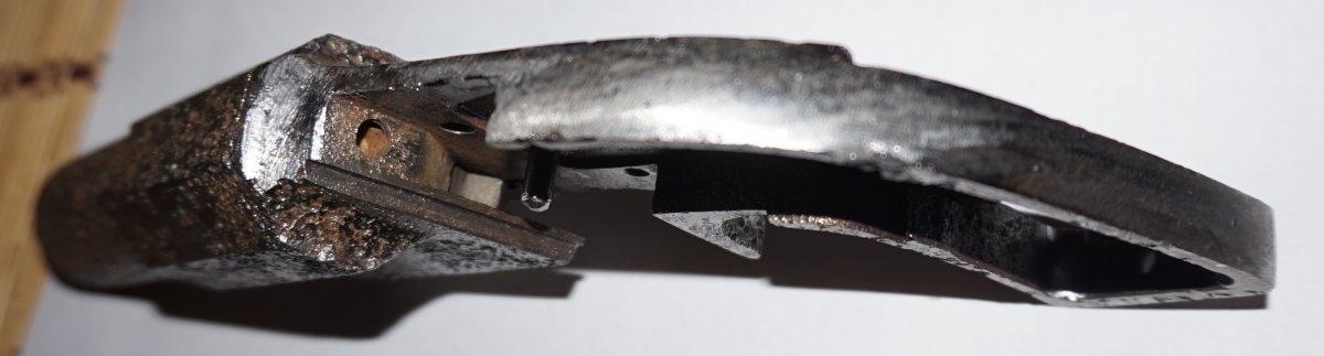Пока в ремонте плата управления полуавтомата, решил попробовать эл.дуговую сварку для реставрации. Благо был пациент с оторванной осколком рукояткой и подгнившим краем трубы.Для начала почистил.
