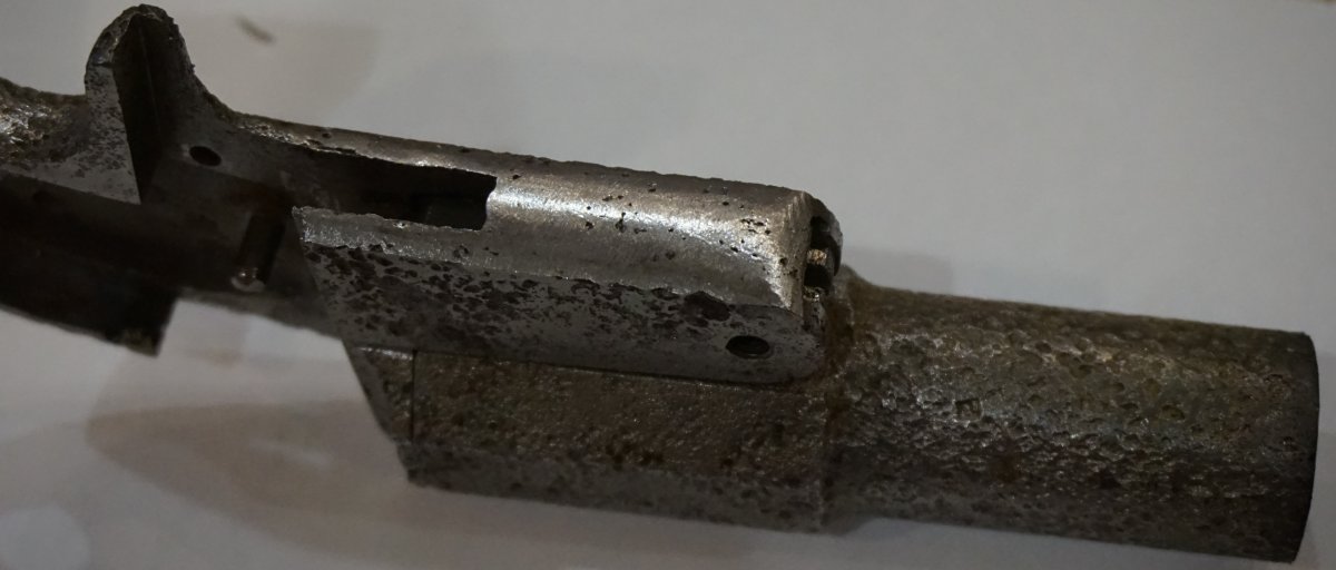 А вот и клеймо ижмаша. И оно расположенно не сверху ствола как клеймили в 43 году,а с левой стороны рамки так клеймили и калаш в 1965 году.
