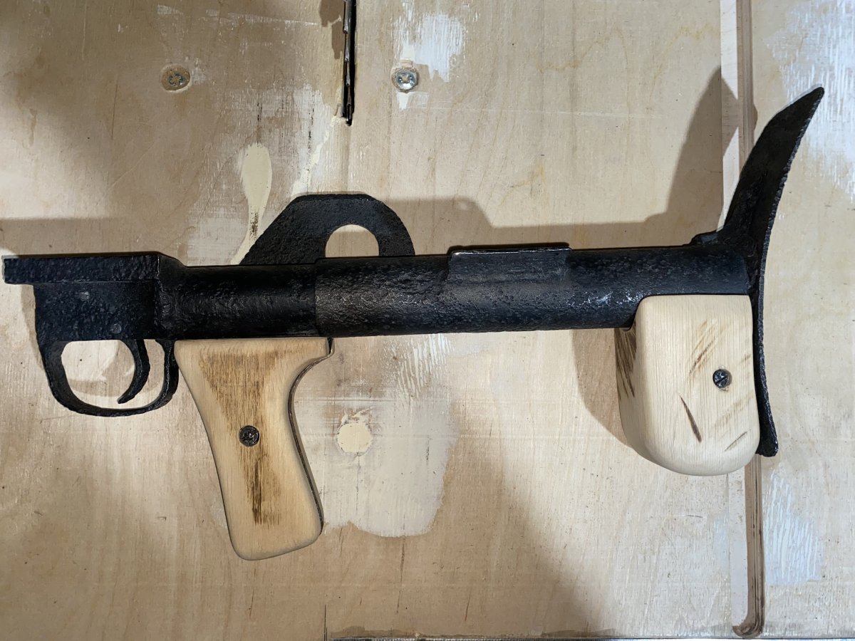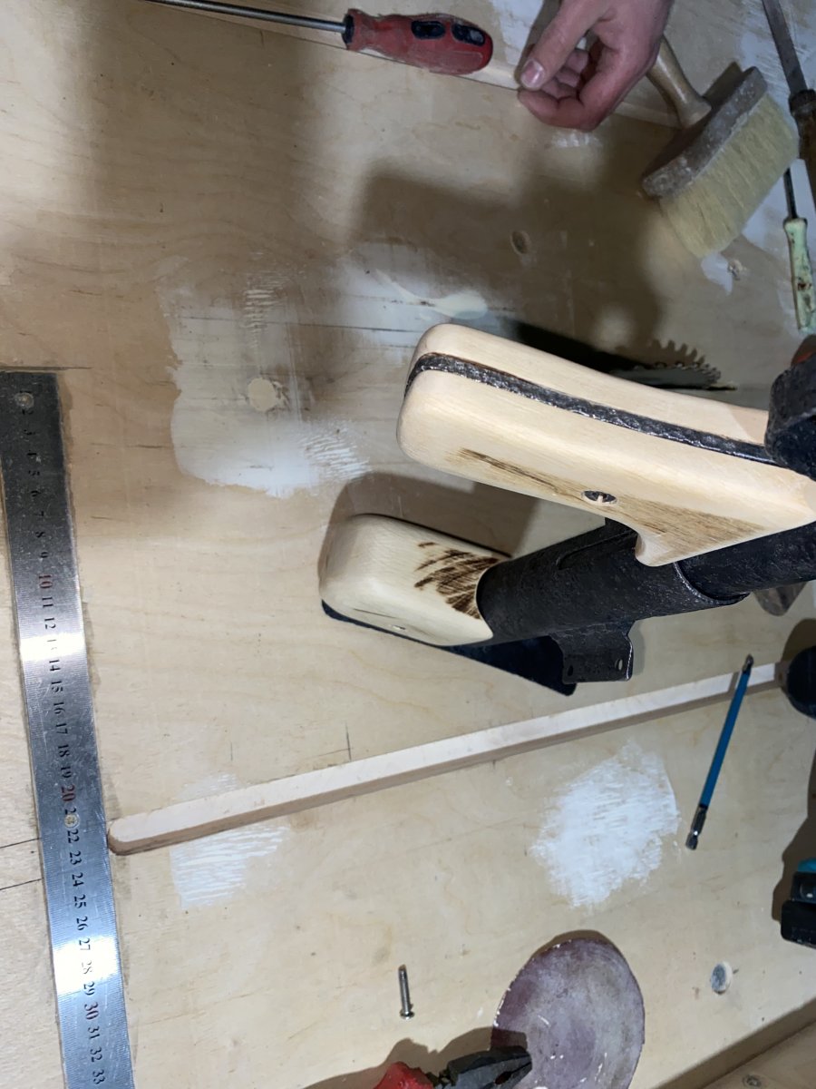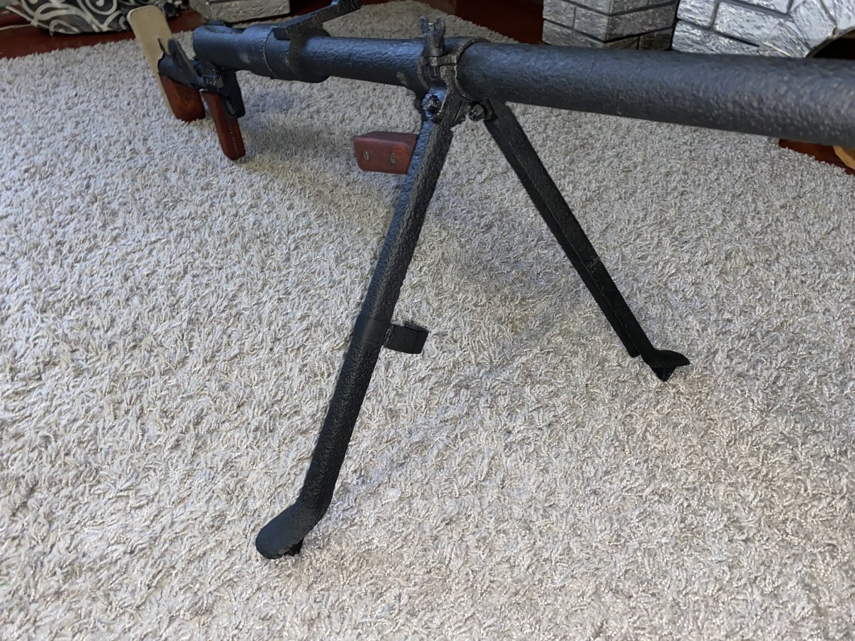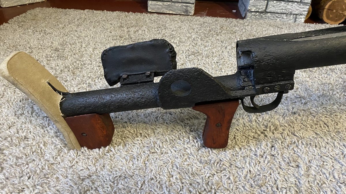 После разборки стандартные процедуры очистка от всех очагов ржавчины, обезжиривание и покраска чёрной матовой краской. Далее были изготовлены деревянные части из граба (или бука) покрашены морилкой и застарены. Скажу что фото с размерами дерева имеющиеся в интернете не точны или же были разные варианты, пришлось подгонять все по месту. Далее изготовление подушек на приклад и подщечник, заполнены войлоком и ватой. Была проблема с пружиной которая держит сошки вместе, пришлось изготовить новую часть которая приварена к сошке и с помощью эпоксидки зашпаклевать саму пружину, т.к. была просто в решето. В общем пока как-то так, мне очень понравился процесс реставрации если можно это так назвать)