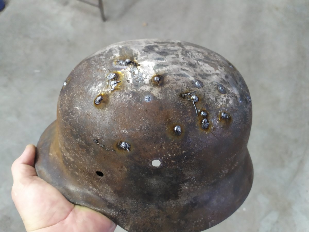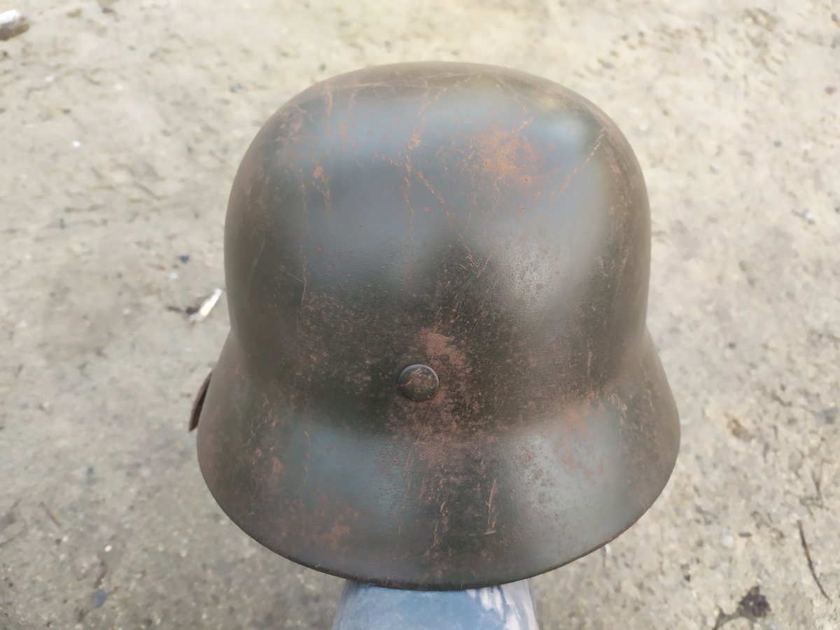Больше на чердачный сохран похоже, для реконструкций ржавчину применять не стоилобы ИМХО. Даже если предположить что в фронтовых условиях каска юзается зимой или в сезон дождей она врятли поржавеет, скорее даже наоборот, отполируется и будет блестеть как малированый горшок. А в целом все сделано гуд.