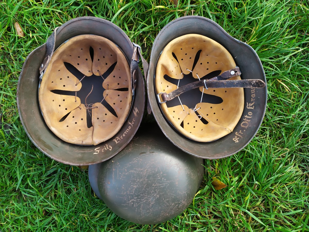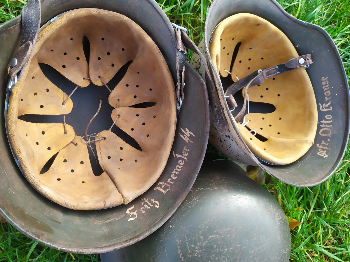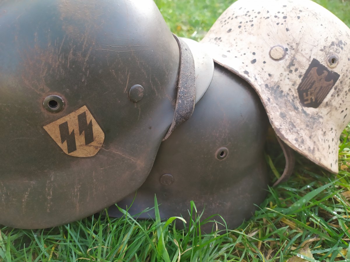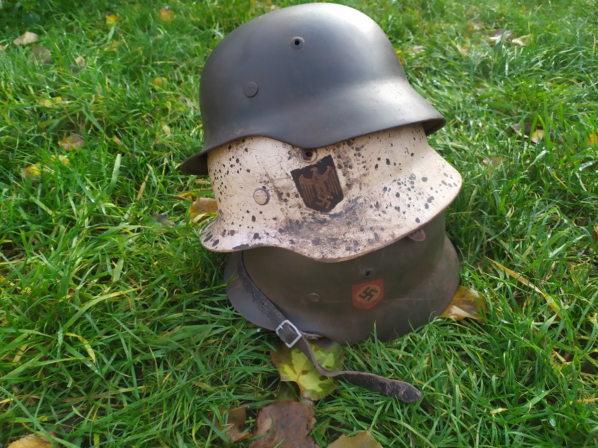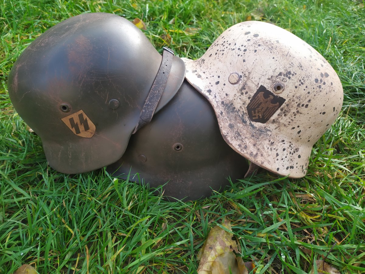 Доброго дня спільнота!!!Відреставрував три м35!!!Прибули до мене від різних людей.В усих різні виробники.Один м35 64-го розміру,завод NS,номер D257,був вермахт,але просили зробити без декалей.Другий м35 був пофарбований і намальована від руки декаль)))коли зняв фарбу,виявилось що купол латався,і було чимало свіщів,66-й розмір завод SE,номер 3317,попросили зробити під сс.Третій м35 теж 66-го розміру,завод Квіст(Q)номер 183,попросили зробити піхоту в зимовому перекрасі.В усих колір рал 6015.Всім вдалого початку тижня!!!