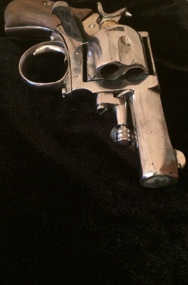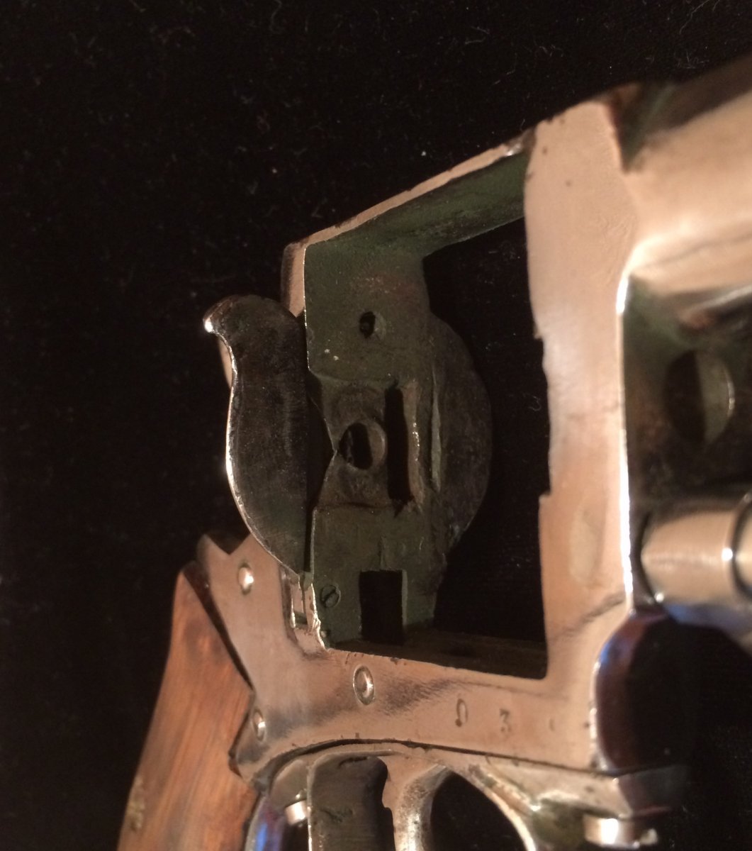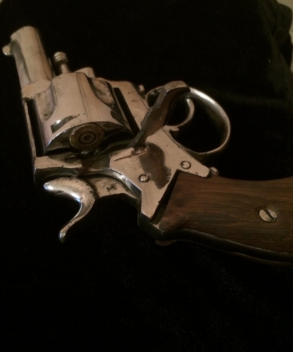 Приветствую камрады. Достался вот такой револьвер. Видны остатки клейм, подскажите страну и возможно производителя. До реставрации говорят что был бодрый коп. Предмет красивый и интересный. Щелкает самовзводом, отсутствует храповик барабана и возвратная пружина спускового крючка. Бойок укорочен, ствол залит металом. калибв 11-12 мм, хромирован по наружи, есть несколько ммг родных патров Буду признателен за обсуждение. С ув. Макс