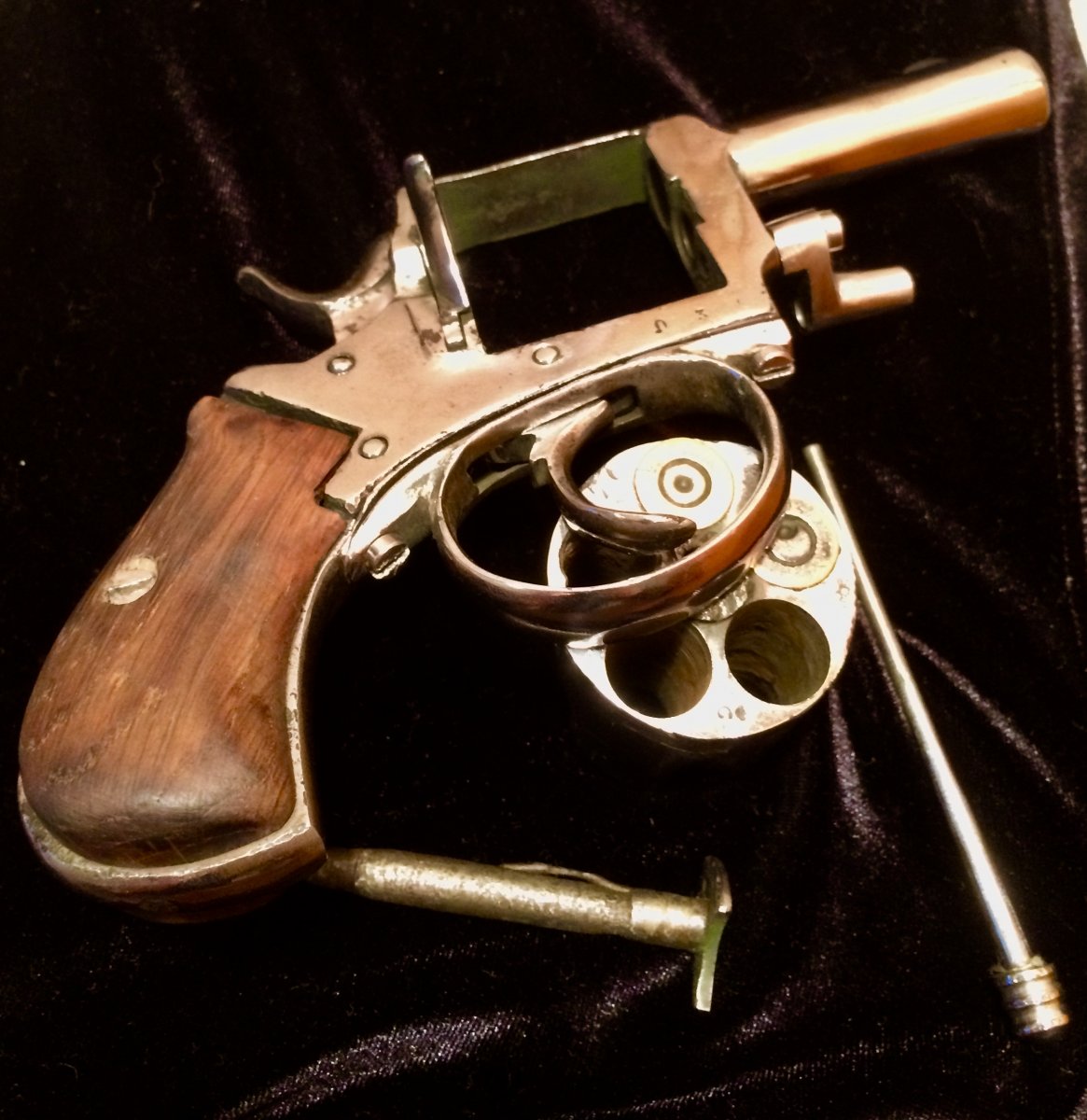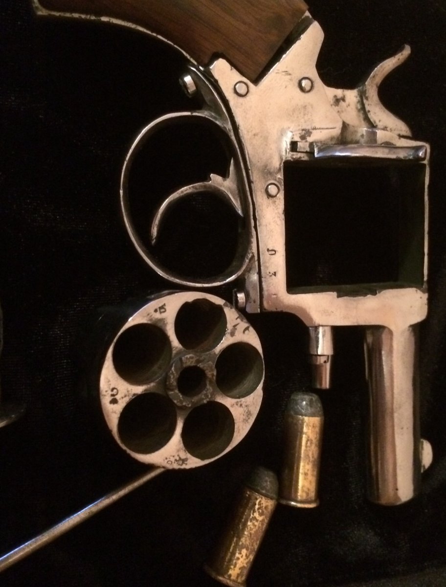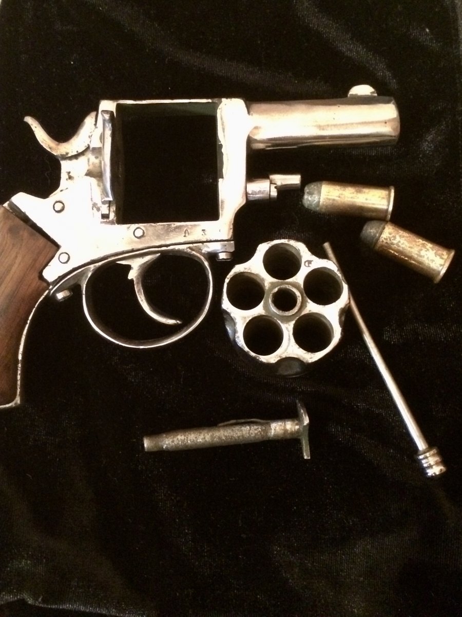 Приветствую камрады. Достался вот такой револьвер. Видны остатки клейм, подскажите страну и возможно производителя. До реставрации говорят что был бодрый коп. Предмет красивый и интересный. Щелкает самовзводом, отсутствует храповик барабана и возвратная пружина спускового крючка. Бойок укорочен, ствол залит металом. калибв 11-12 мм, хромирован по наружи, есть несколько ммг родных патров Буду признателен за обсуждение. С ув. Макс