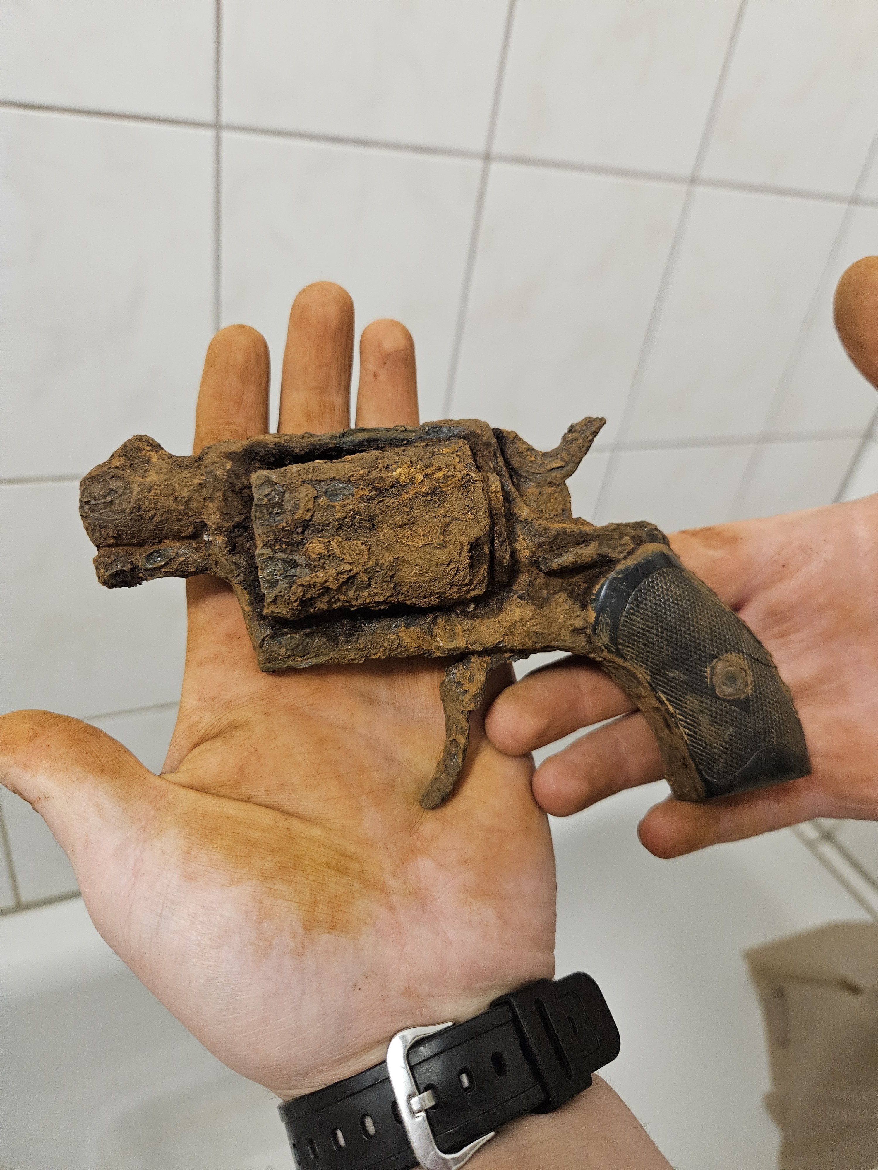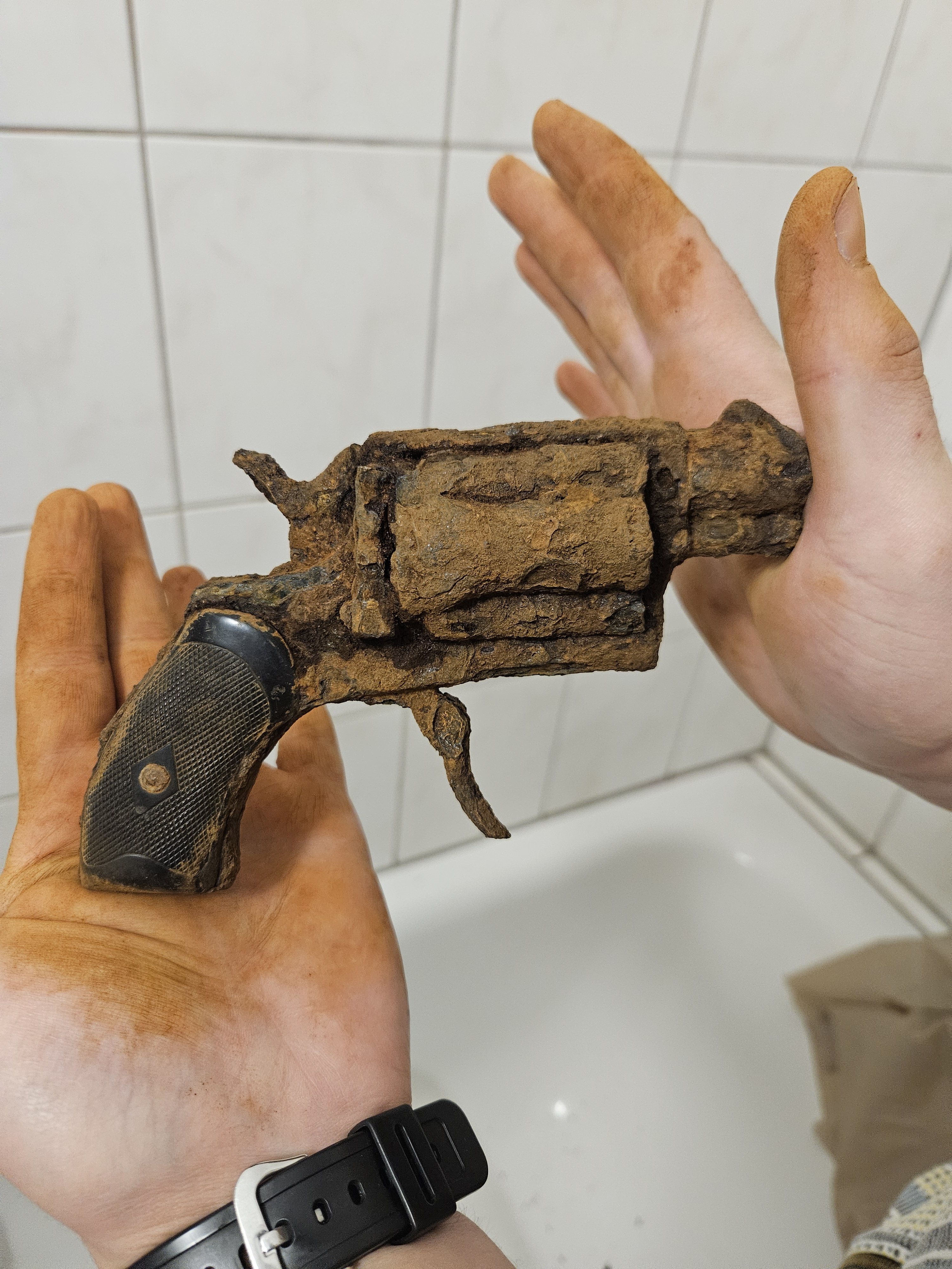 Понял вас спасибо! Та блин начал аккуратно обстукивать, барабан в труху сыпется В общем там под коркой металл в некоторых местах в толщину фольги, если вообще есть. Если чистить полноценно до металла, курок и спуск уйдут, шомпол тоже, вот думаю как с ним поступить. Это мой первый револьвер, хочется как трофей сохранить. Может с ним поработать как с античным железом? Обезсолить, закрепить, потом вывести форму и в рамку на стену, для большего я его не планирую... Так что боюсь его чистить полностью