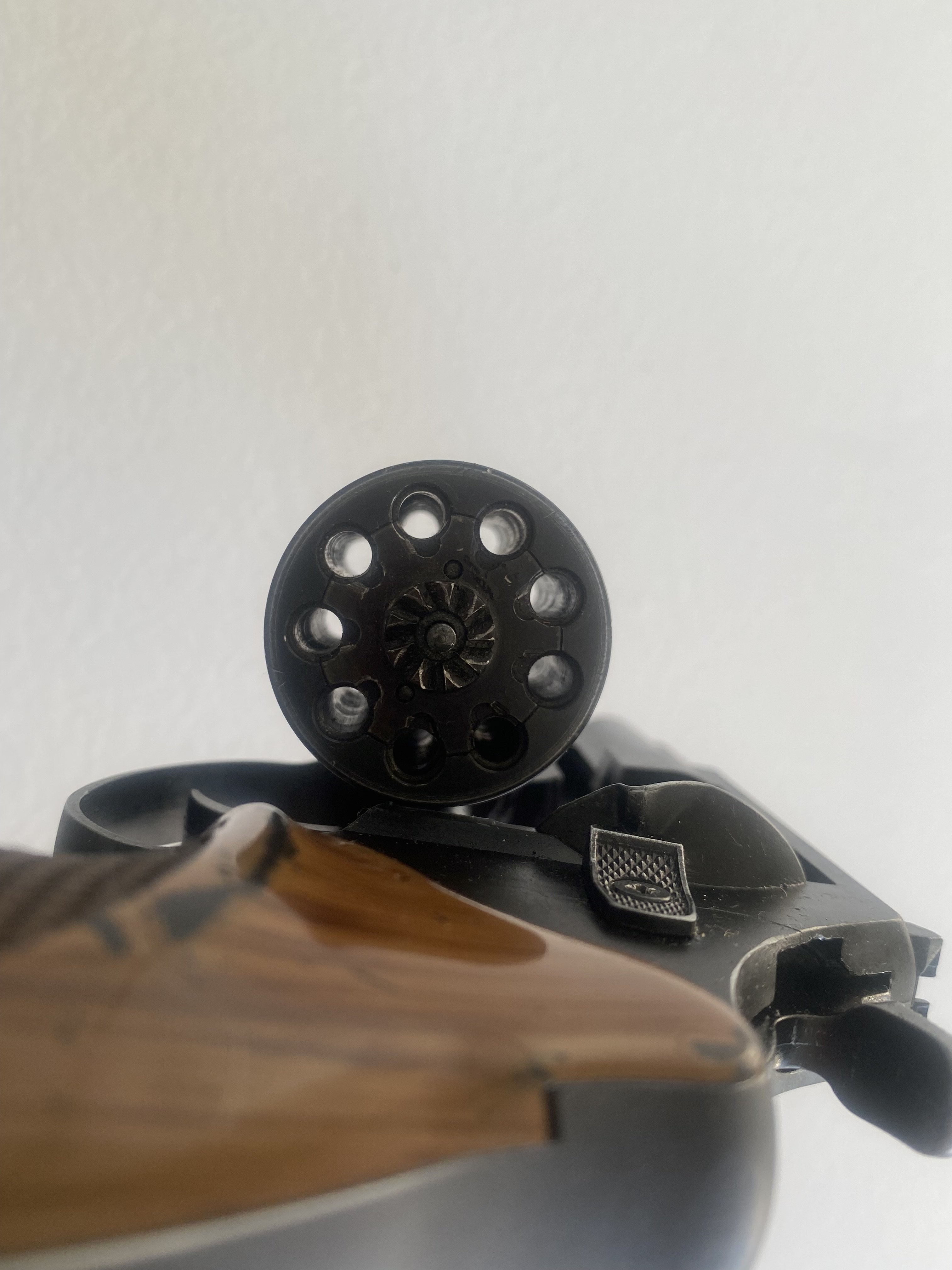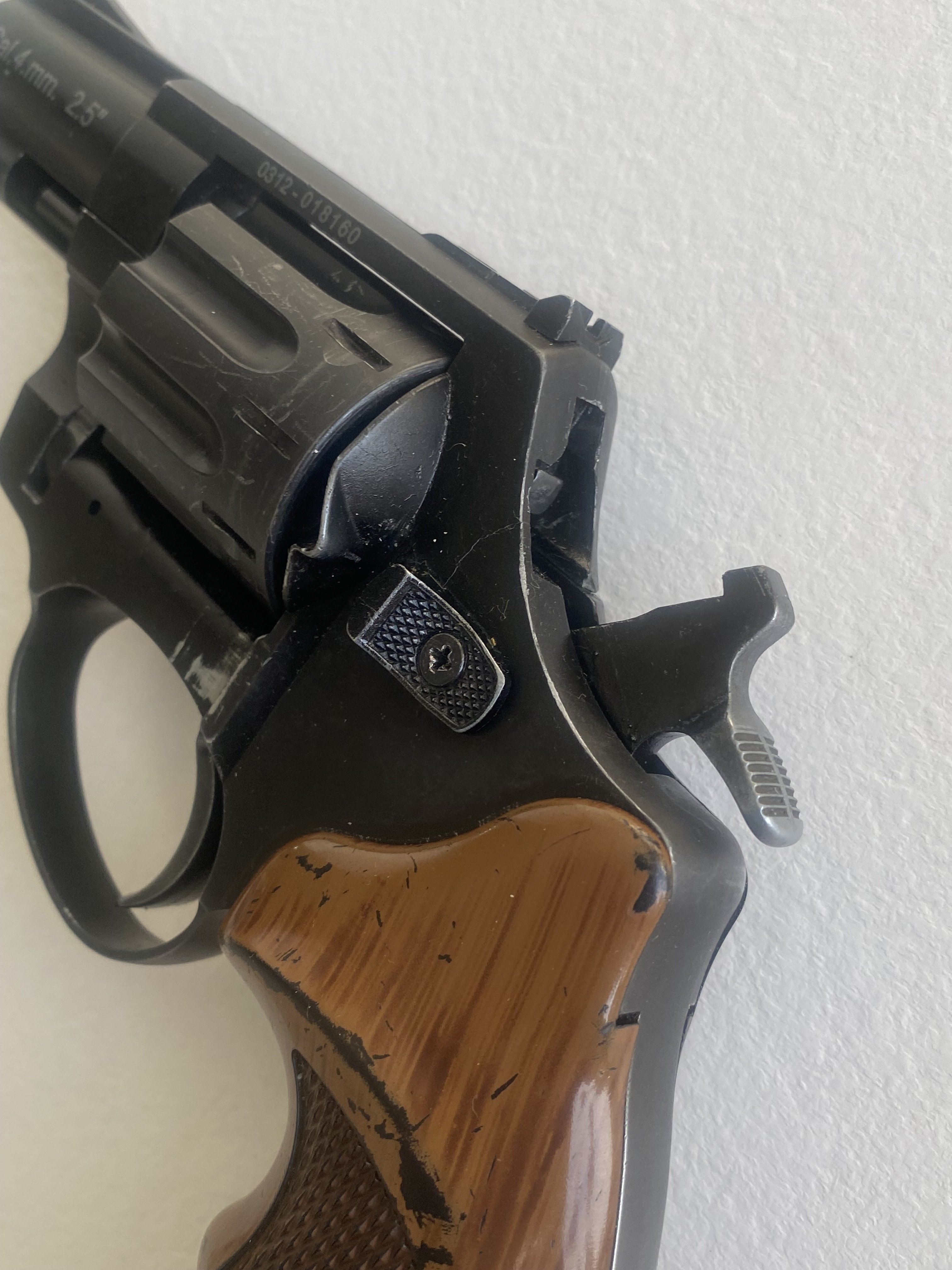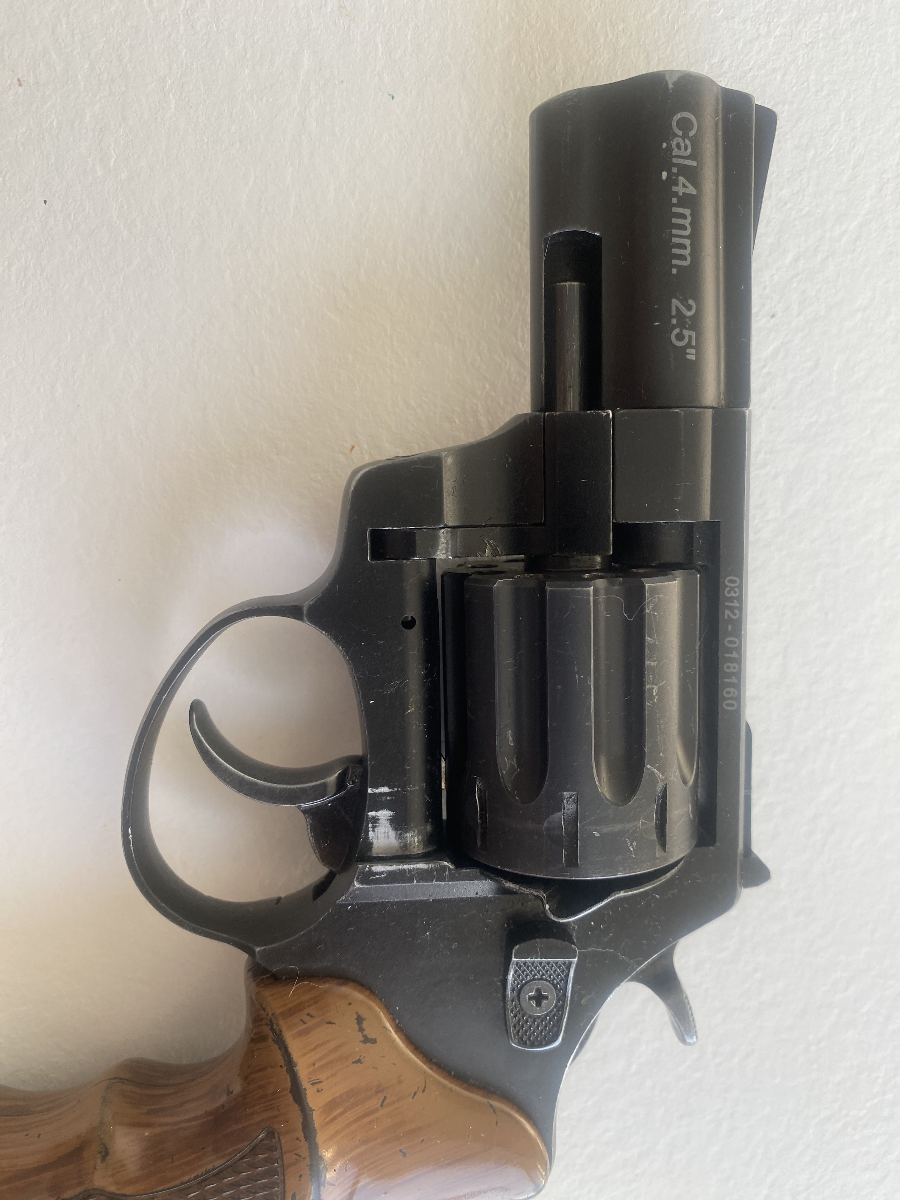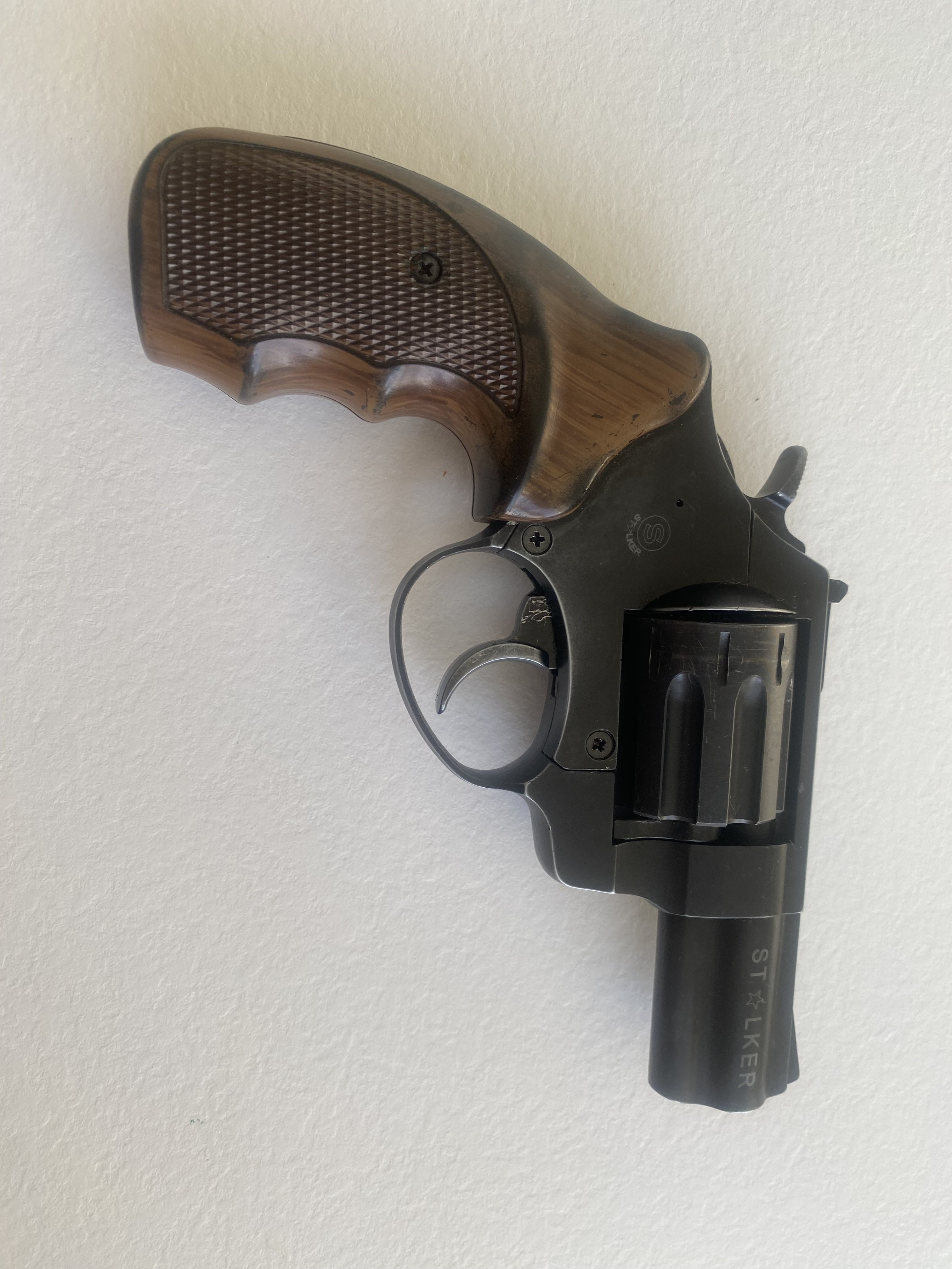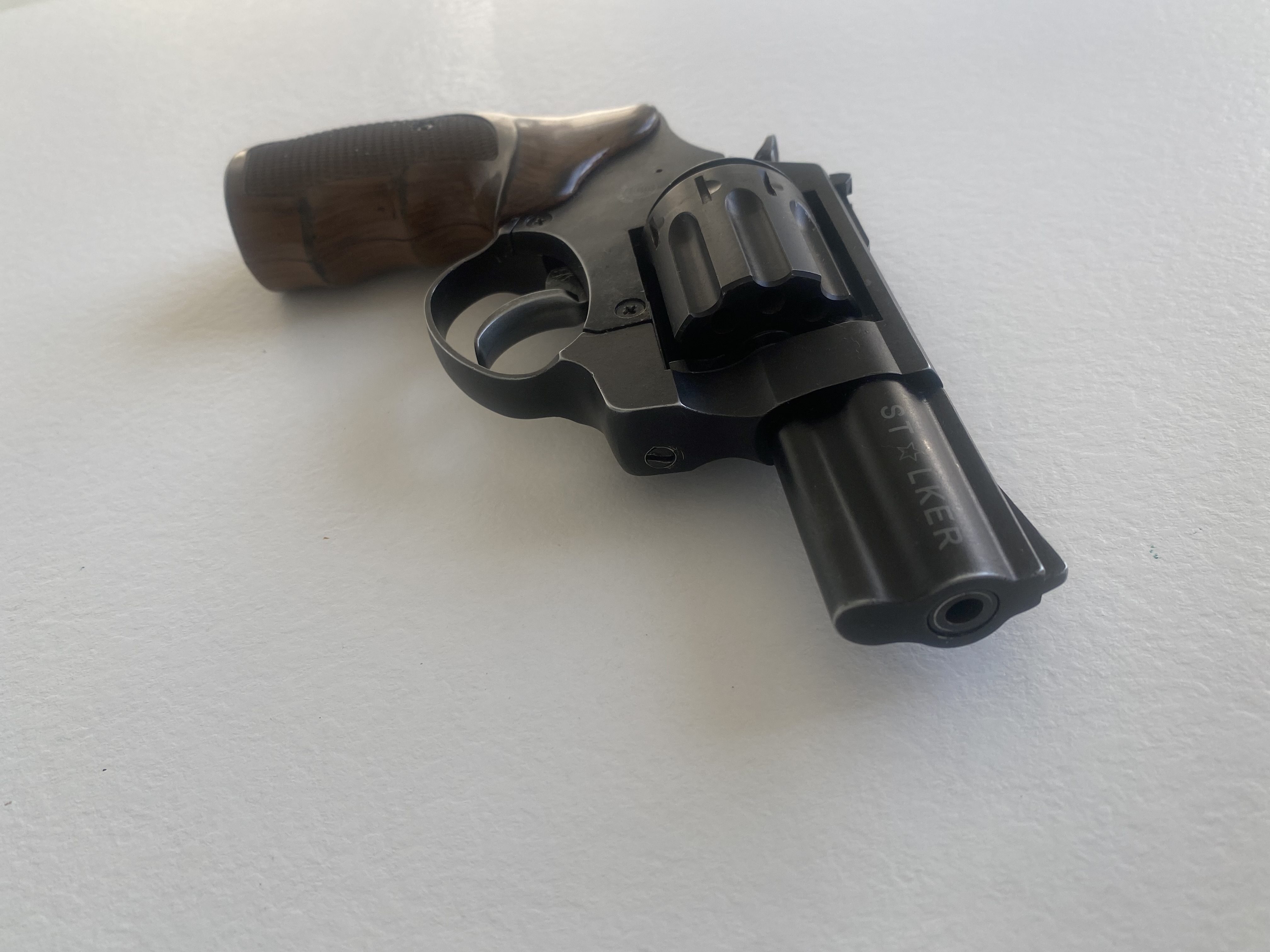 Продам револьвер под патрон флобера 4мм.Сталкер 2,5.Револьвер стреляет патронами 4мм.флобера.Из недостатков-предыдущий собственник револьвера зачем то слегка просверлил коморы в барабане и ствол,на фото попытался показать.Цена -2800гр.