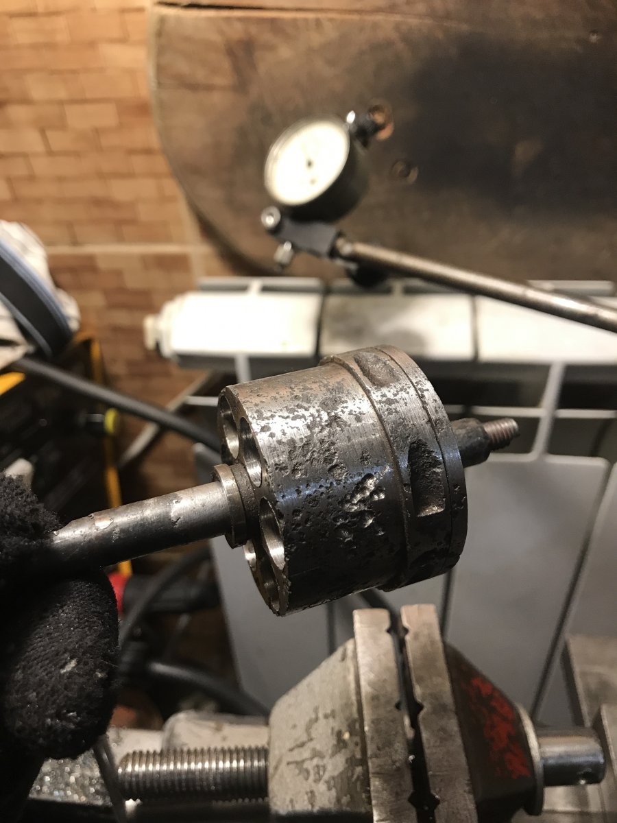 Пытаюсь восстановить главный вал. Та его часть которая была снаружи сильно пострадала. Что интересно рама в месте крепления вала на заводе просверлена криво что говорит о полукустарном способе производства ранних моделей.