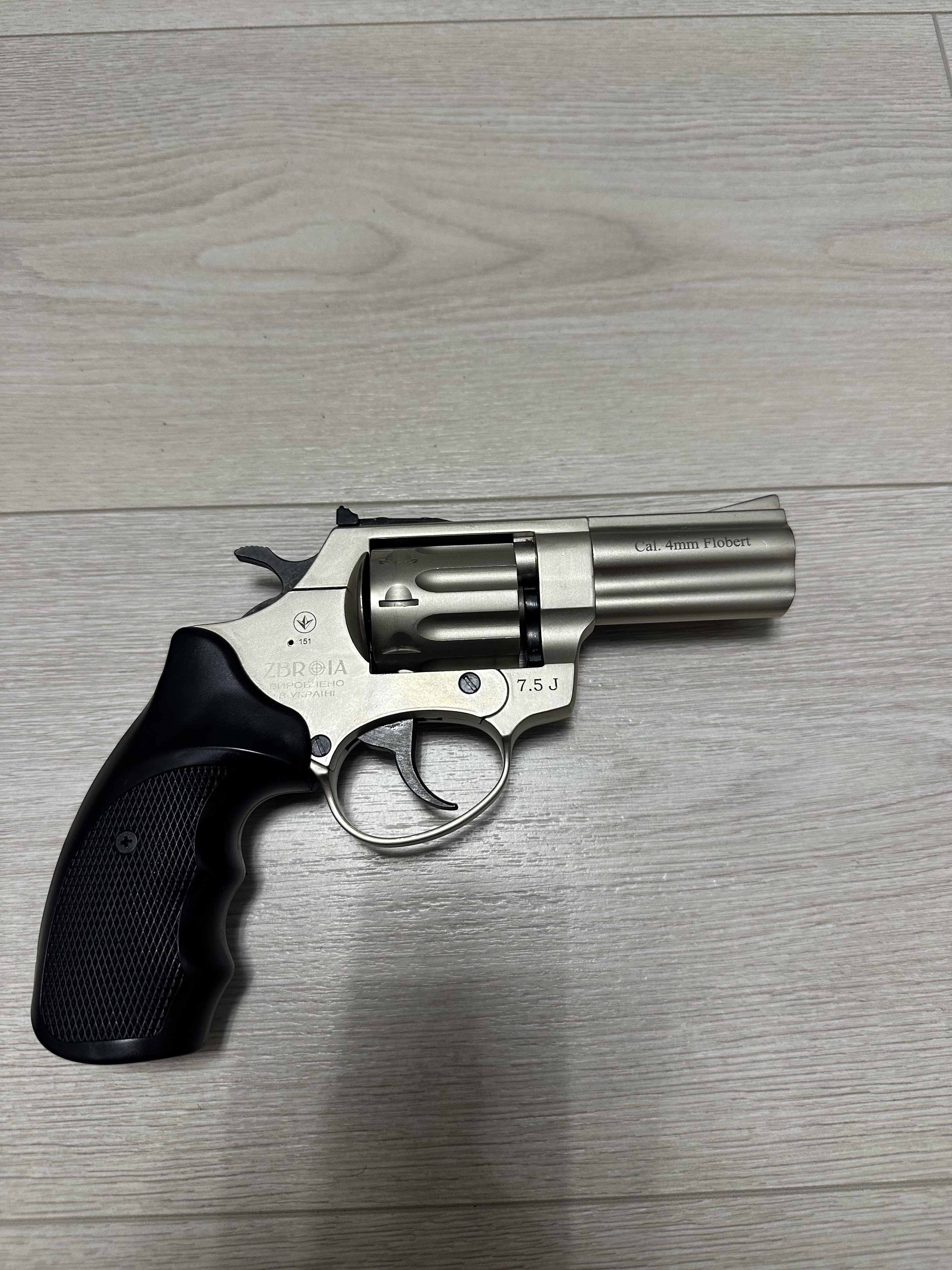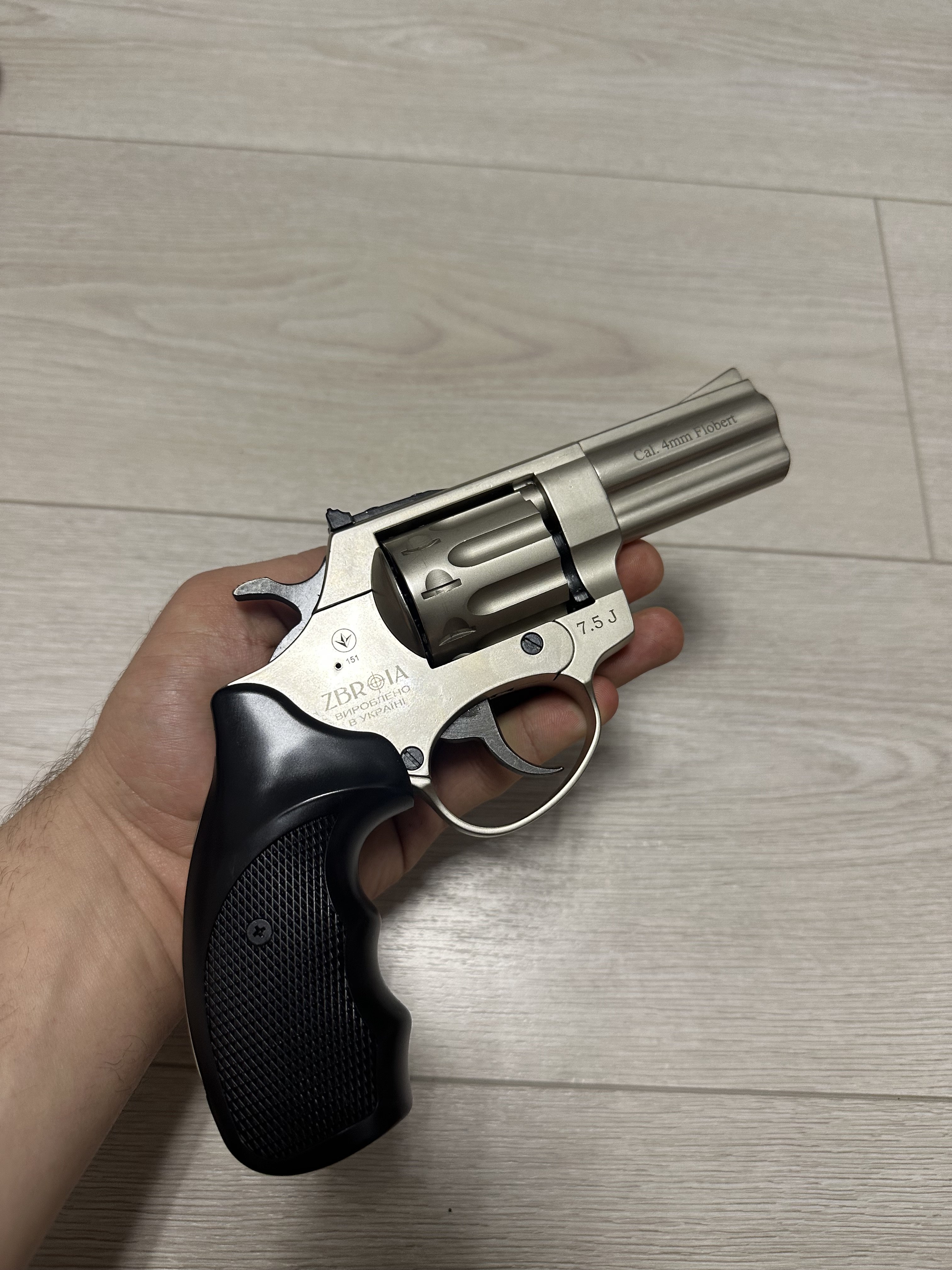 Револьвер Zbroia Profi 3 під набій Флобера. Завужені камори барабана! Револьвер у відмінному стані . Сталевий УСМ , сталевий нарізний ствол та сталевий барабан. Зазор між стволом та барабаном мінімальний. ціна - 3800грн У комплекті револьвер.