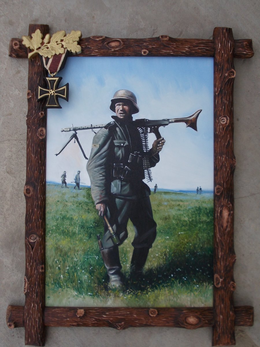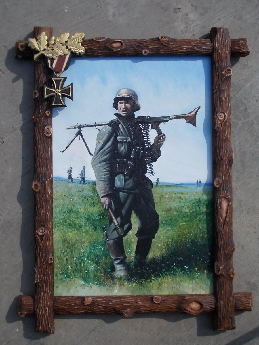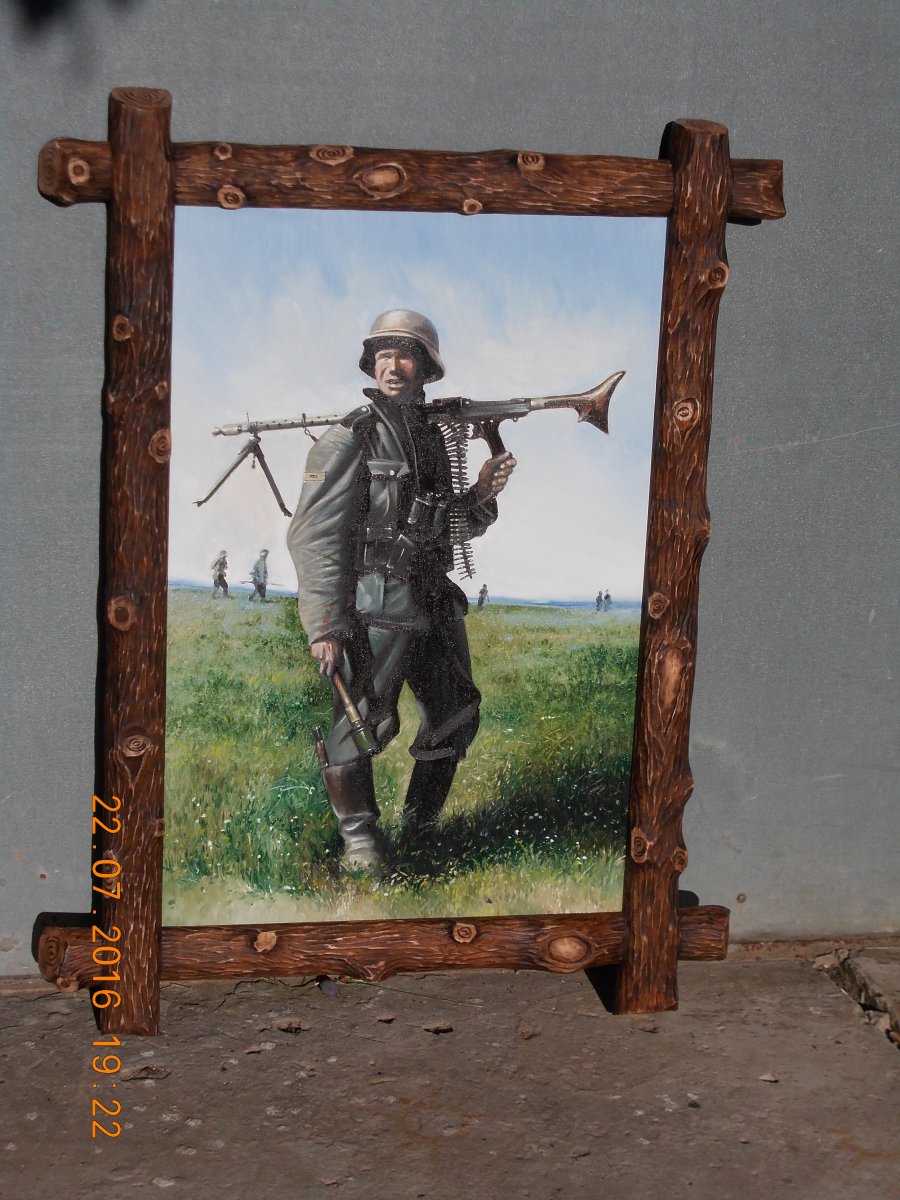 А ось спільний наш проект із камрадом D-day ... Він малює ... !!! А ми рамки різьбимо ... Ось ще не завершена для картини "кулеметник" ...