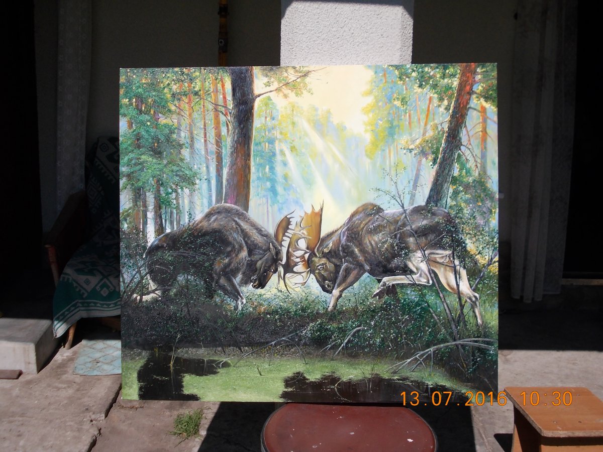 Для мене така картина - набагато достойніша прикраса кімнати мисливця ніж трупні голови. За час полювань я мав досить достойні трофеї, але забрав на пам"ять лише ікло кабана.