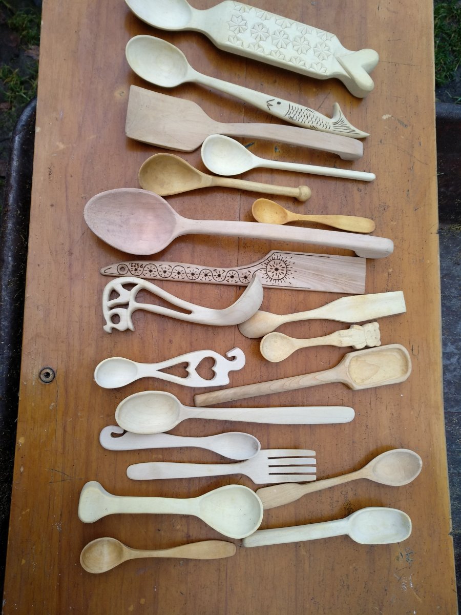 Доброго, сам люблю работать с деревом и ложки резал и мебель восстанавливал дома. Счастья времени не хватает. Буду днём дома сфоткаю покажу, много подарил друзьям товарищам да и сослуживцам.
