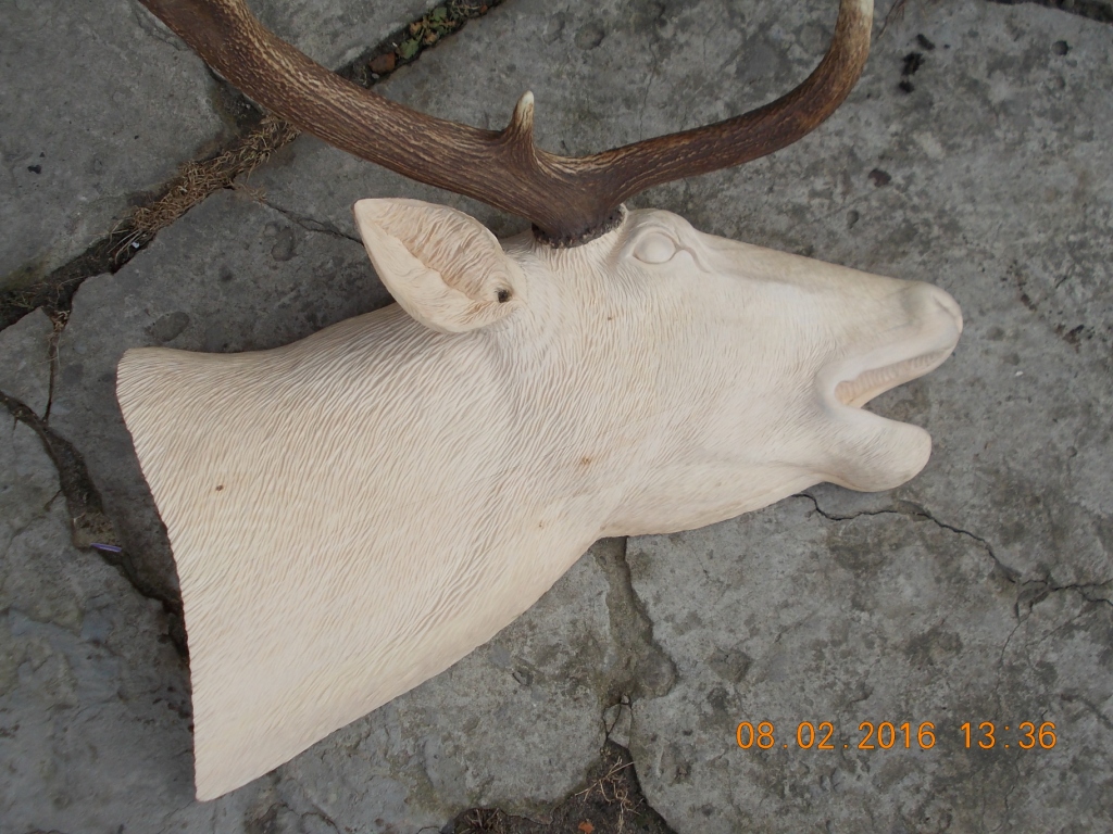 Доброго дня. Бачу, літом працювати ніхто не хоче. Я не виняток , за довший час змайстрував таку роботу, ескіз не новий але хотілось показати самі роги. Роги гублені, можливо розпаровка, були в поганенькому стані, найгірше було зняти старий лак. Череп використав від інших рогів, обробка воском і в результаті ось що вийшло. Перевезти виявилось можливим тільки бусом, можна уявити собі силу і велич оленя який носив їх на собі.