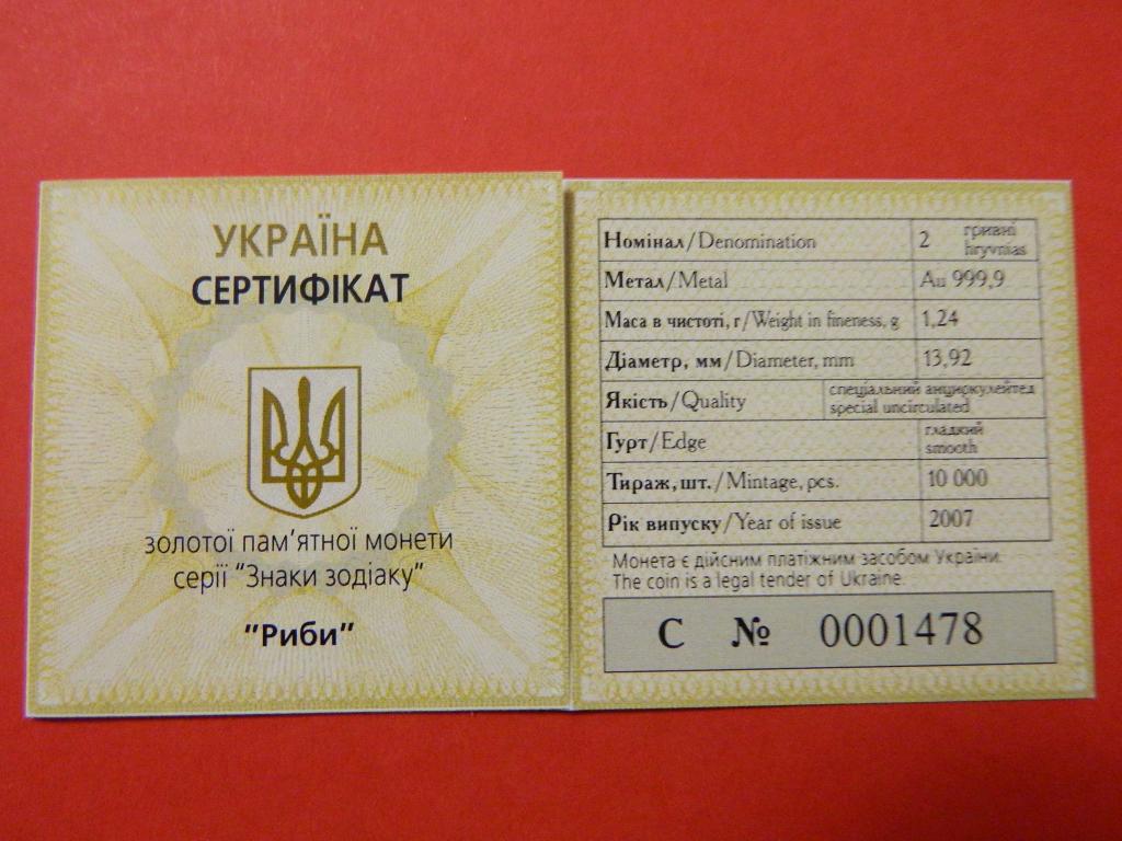 Продам золотую монету 2 грн - знак зодиака Риби за 700 грн. В полной комплектации ( серттификат, футляр) в идеальном состояни. Пишите в личку ( Киев). http://coinstore.org.ua/index.php?productID=2