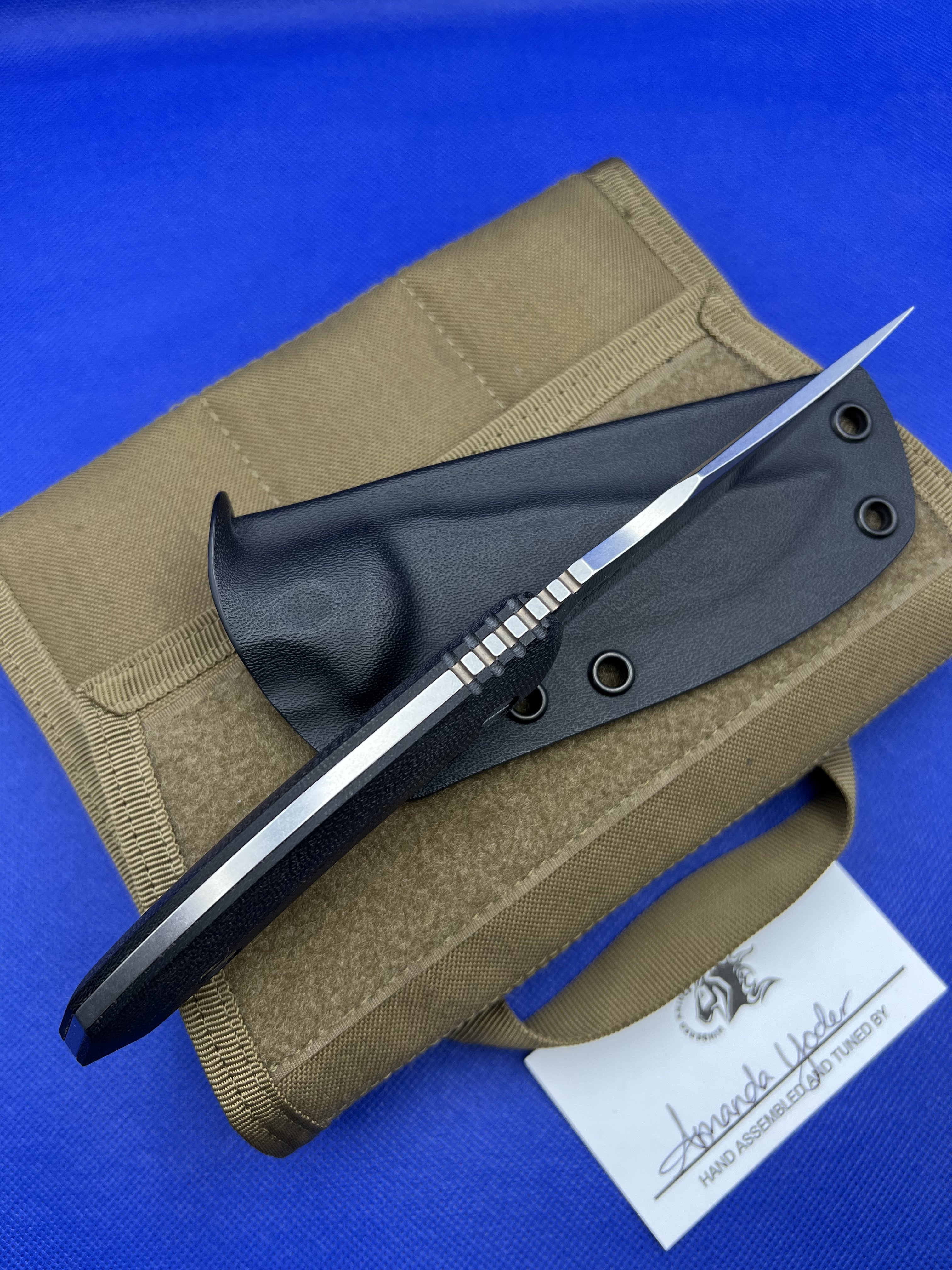 Нож новый с коробкой и кожаными ножнами. В подарок отдам чехол из кайдекса который изначально не комплектуется с ножом. Нож очень харизматичный, подойдёт для любителей бренда, и ценителей качественных ножей. Цена - Продан Отправка Новой почтой с полной страховкой за счёт покупателя. Оплата на карту Пумб ХАРАКТЕРИСТИКА: Общая длина - 218.69мм Длина клинка - 97.28мм Толщина лезвия - 4.19мм Марка стали - 20CV Тип лезвия - Bowie Финиш лезвия - Stonewashed Материал рукояти - Black Micarta Сделано в США