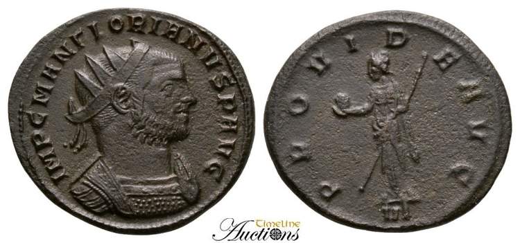 IMP C M AN FLORIANVS P AVG, radiate, cuirassed bust right / PROVIDE AVG, Providentia standing left, holding globe and sceptre. Mintmark VI. RIC V-1 Ticinum 82; Sear 11867