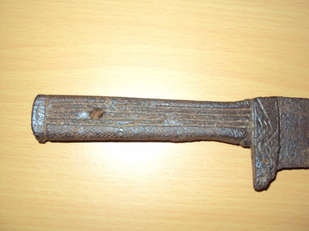 Здравствуйте уважаемые форумчане.Прошу вас идентифицировать найденый цельнометалический нож.Находка из Сумской обл.Украина.Выставлял на Виолити и Домонгол-конкретно не определили.Буду признателен за любую информацию.Заранее благодарю всех ответивших.С ув.Алексей.
