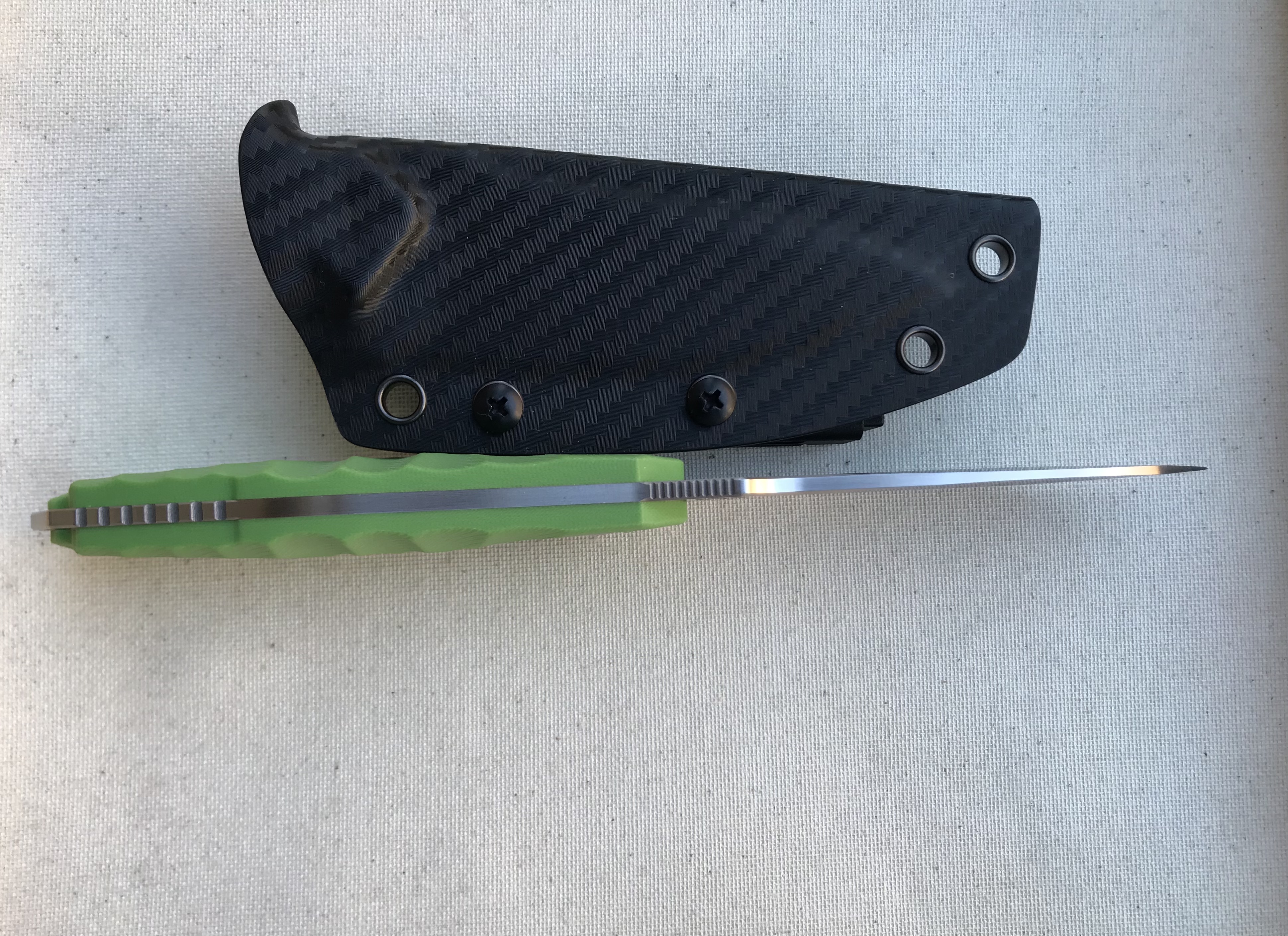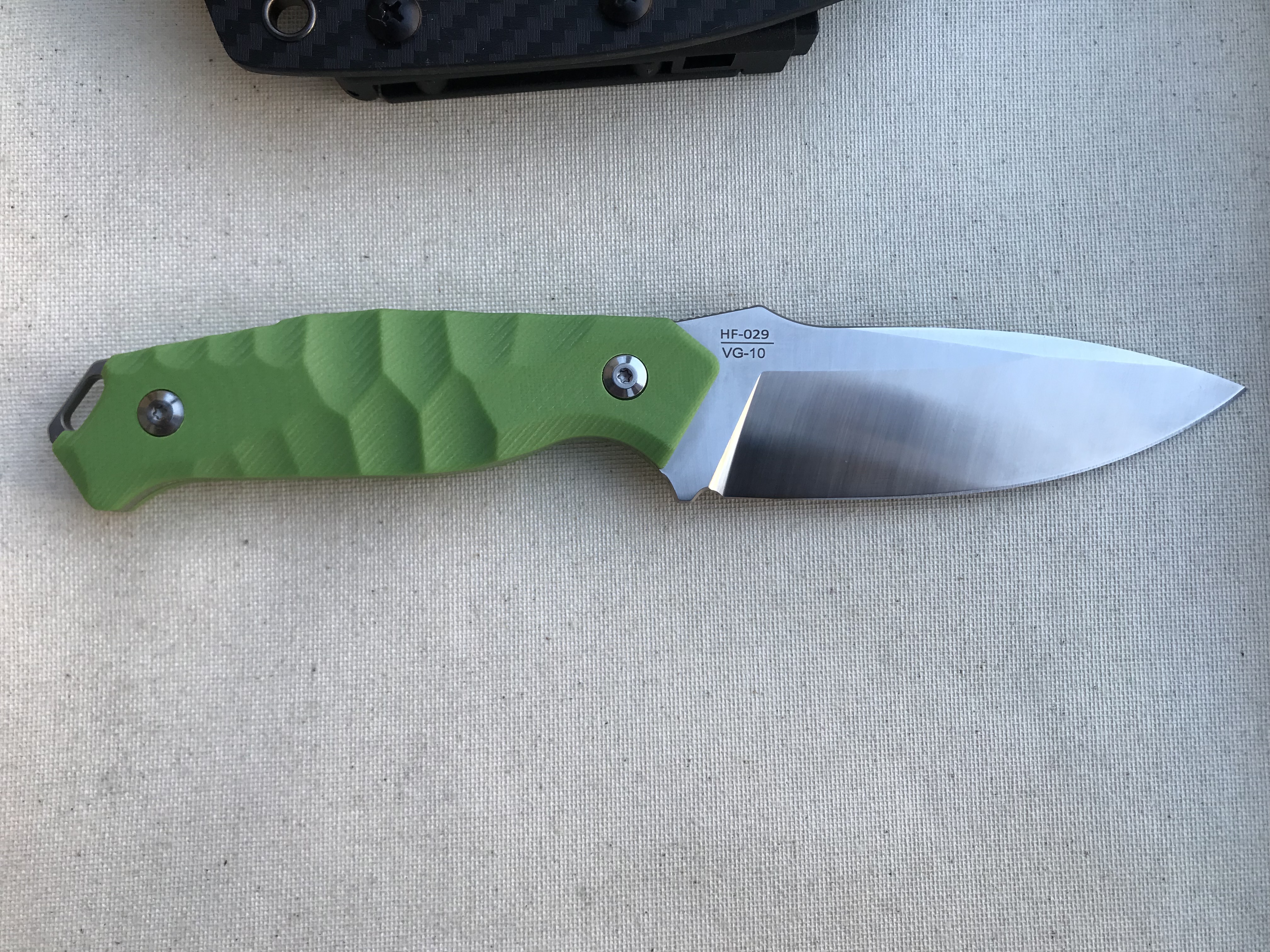 Гарна якість. Тонке зведення. Якісні піхви. Лезо 9,8 см Повна довжина 21,4 см Товщина 3 мм Сталь VG-10 (кажуть китайці) Руків‘я G-10 Піхви кайдекс Вага 151 г (221 з піхвами) Ціна: 1600 грн Оплата картка, відправка пошта. Київ можливо особисто.