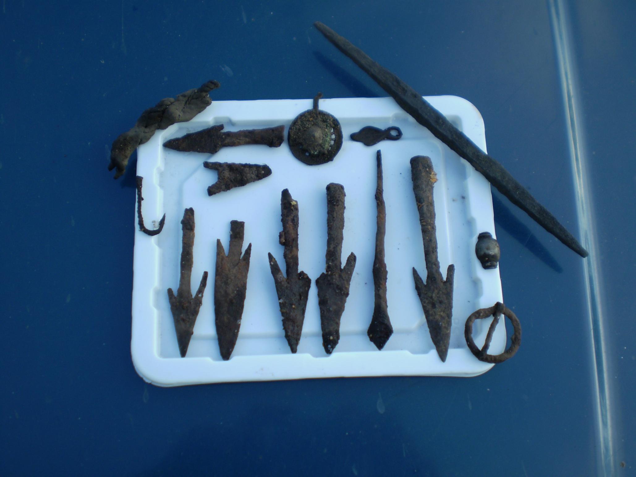Находил подобную,на глубине 1.8 метра(хоз яма),а рядом наконечник стрелы.Подумал умбон счита,но смутила плоская форма и отсутствие гвоздей крепления?
