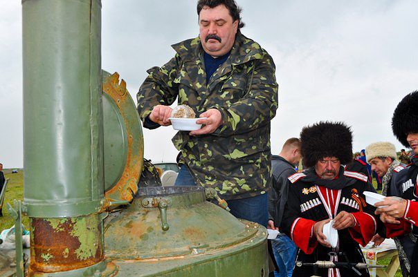 так скажу... короче году едак в 2002-2003 потащили меня друзья на козацкий "Слет" Под Конотоп куда то...как село называется уже не помню....Шаповаловка вроди.... или нет не помню короче... вообщем приехали мы втроем встретил нас месный Отаман пан Якут (толи фамилия толи имя) отвез нас туда вообщем ..(ну один друг из УНА-УНСО второй из Патриота Украины а я так ..не пришей рукав...)) вобщем действо по селу, парад, митинг , пламенные речи..и тп... далее грандиозная попойка и пожирание кулеша.... и среди всех 500-600 казаков одни мы втроем рядовые...а остальные все сотники,отаманы.гетьманы,хорунжие и тп...после попойки , (изрядно нахлебавшись самогона) все эти паны офицеры мерялись х№;ми , тоесть у кого цветных стеклышков в деревянной булаве больше, у кого нагайка из правельной кожи а у кого нет... была даже казачка в звании отамана с ММГ нагана...... но вообще веселое действо... после этого я отношусь ко всем этим козатствам как к цирку только грустному какомуто....