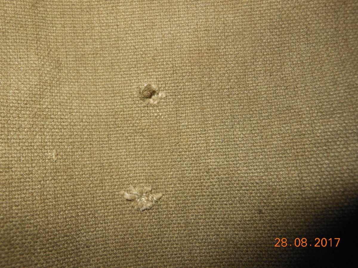 вот такой рюкзак есть зашитая дырка(6.5 см на 5,5 см) , небольшие дырочки 5 шт и повреждения на завязках на фото.цена -45 гр