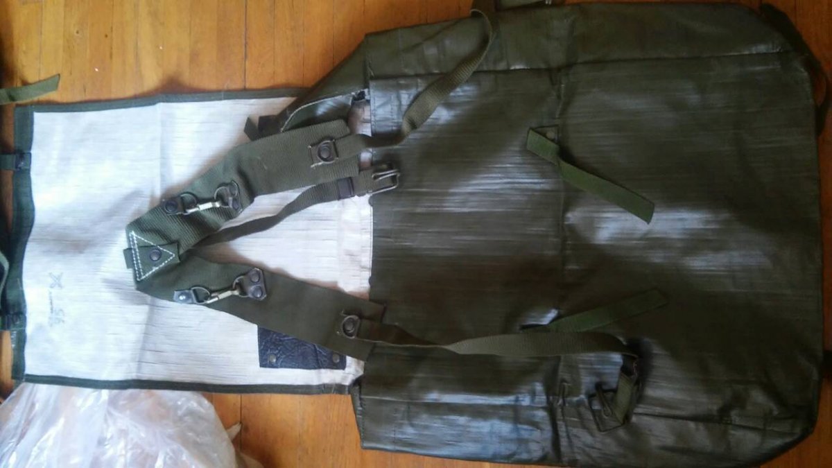 Рюкзаки в наличии.Рюкзак непромокаемый модели М85 Чехия. Вес: 1250 гр. Цвет: олива. Объём около 45 литров. ВхШхГ 50х38х16 см. Материал: капроновый грубый холст, обрезиненный снаружи; тесмяные текстильные ремни. Фурнитура стальная: омеднённые пряжки; сварные D-кольца; кнопки и заклёпки (большого диаметра, с подложкой), карабины. У рюкзака одно большое отделение с двумя внутренними боковыми карманами, выполненными из брезента. Карманы глубокие, около 6,5л каждый, закрываются клапанами на кнопки. Так же имеются два небольших откидных кармана в боковых клапанах рюкзака. Состояние-новые.Цена 190 грн
